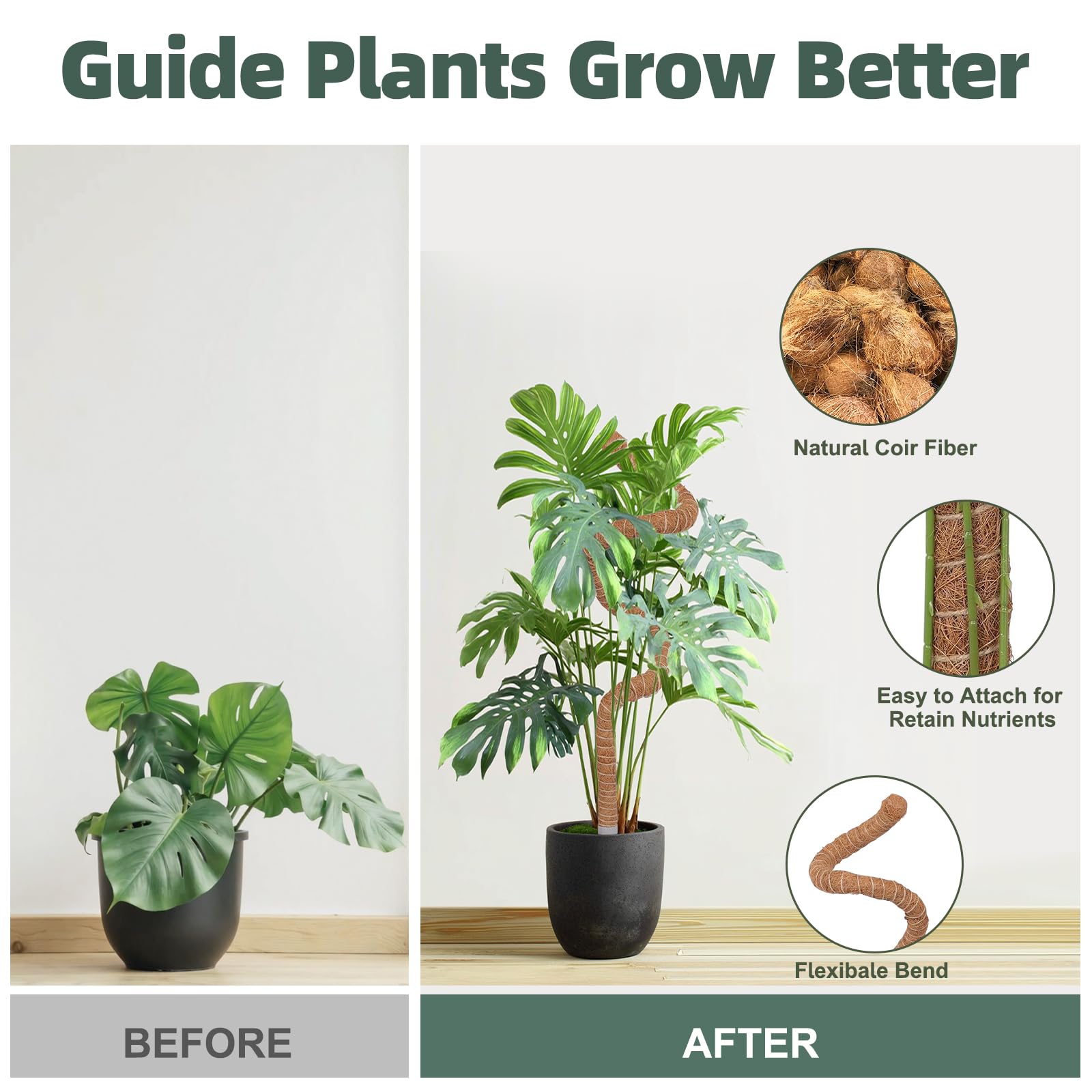 • High Quality Material: LlfeNest moss poles are made of natural fiber material derived from coconut shells, ideal for growing plants to attach new air roots and help plants retain moisture and nutrients. The inner core of this bendable moss poles are made of solid aluminum bar, which is strong and rust-free.