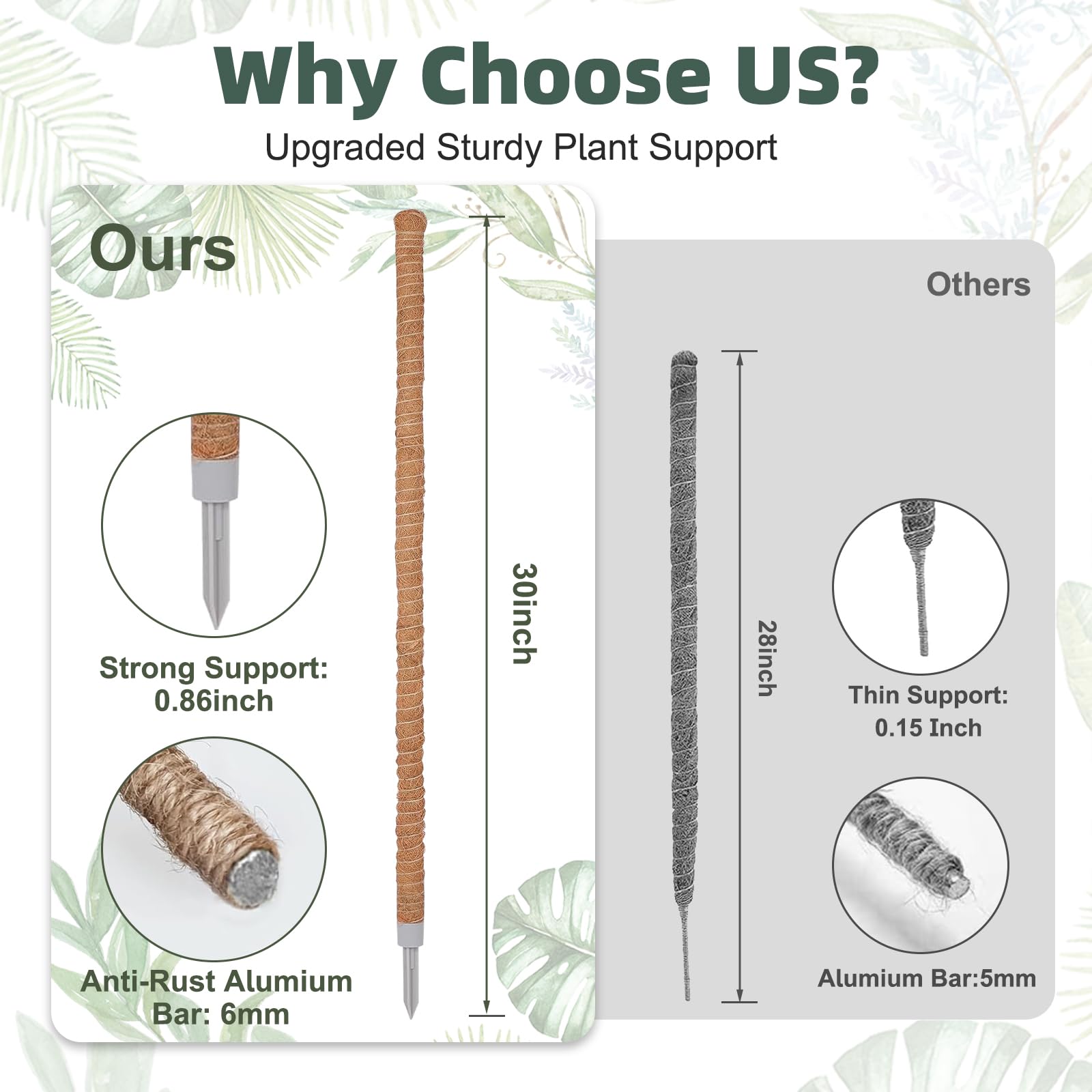 • What Included: Our plant stakes for indoor plants includes 3 of 30in moss poles and two kinds of plant ties. These ties are gentle on your plants, avoiding any damage to the stems, and can be adjusted as your plants grow, providing the right amount of support throughout all stages of development.