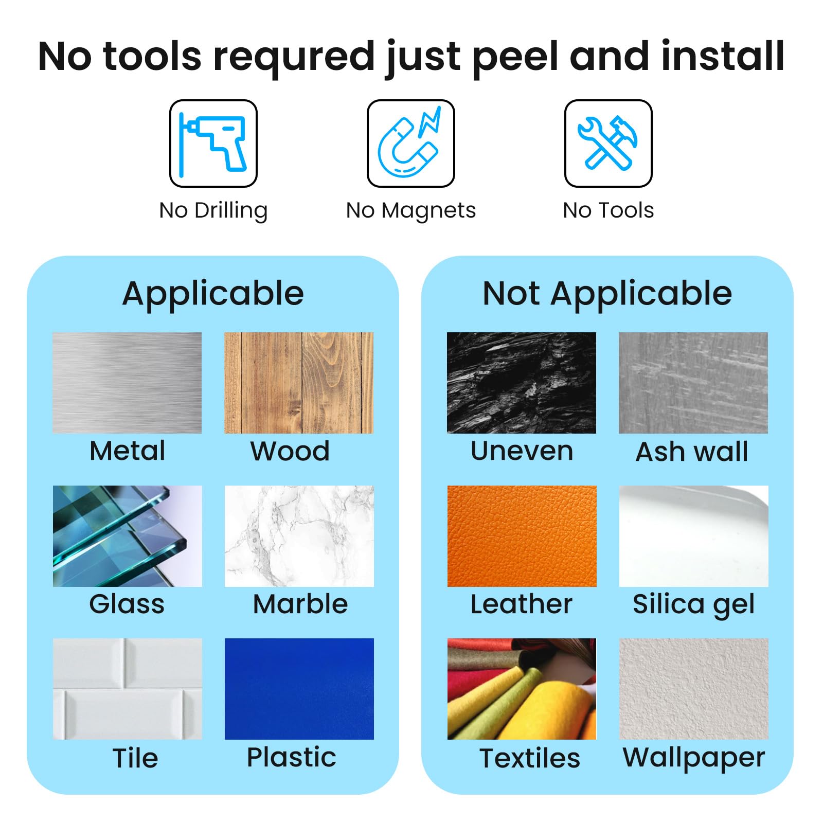 • Suitable for many kinds of surfaces: whether Vinyl, glass, wall, ceramic, wood, metal, plastic, they can stay firmly on the surface.