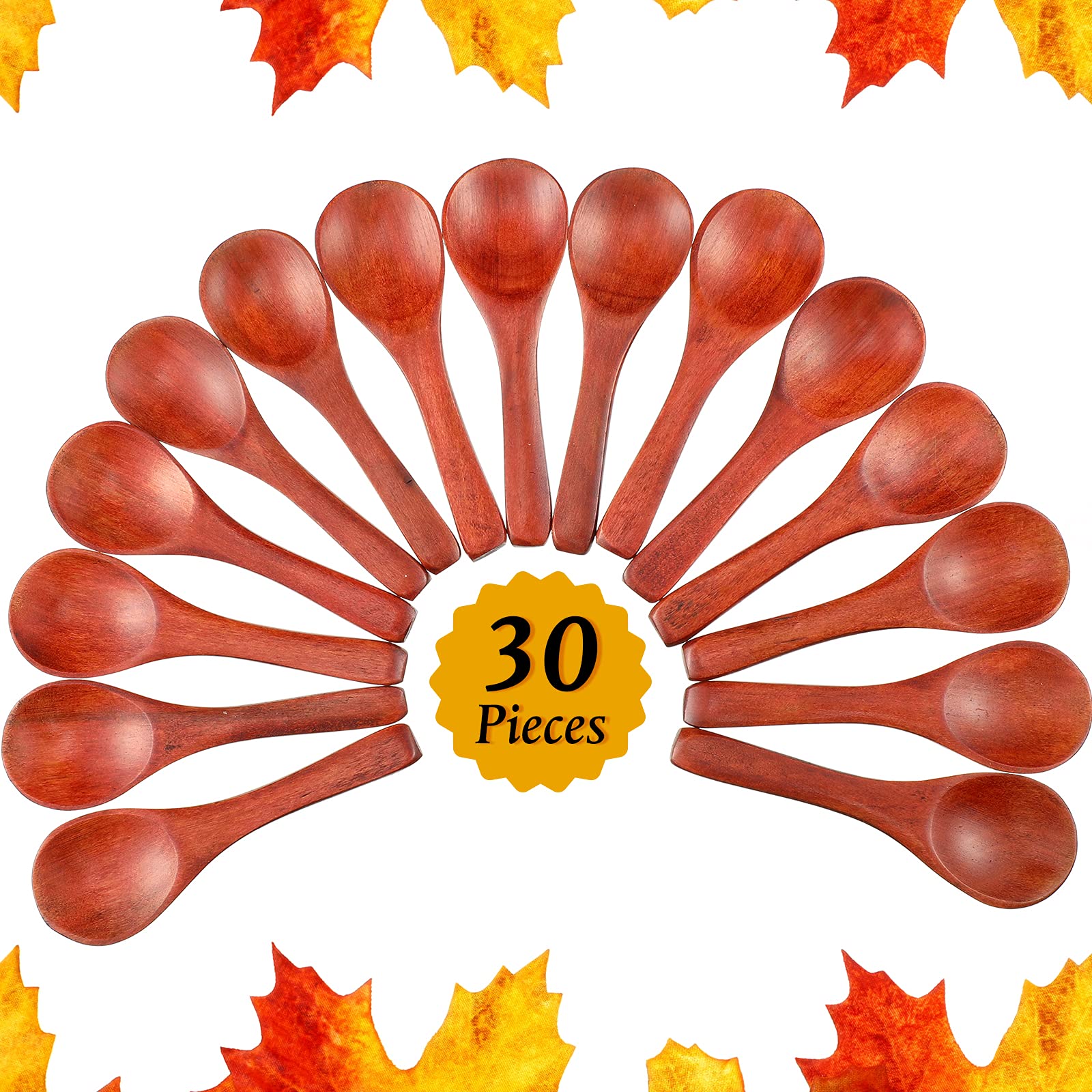 30 Pcs Small Wooden Spoons, 3. 5 Inch Mini Wood Natural Spoons for Jars Tasting Condiments Salt Sugar Coffee Tea Honey Spices, Tiny Wooden Teaspoons for Kitchen Supplies(Dark Brown)