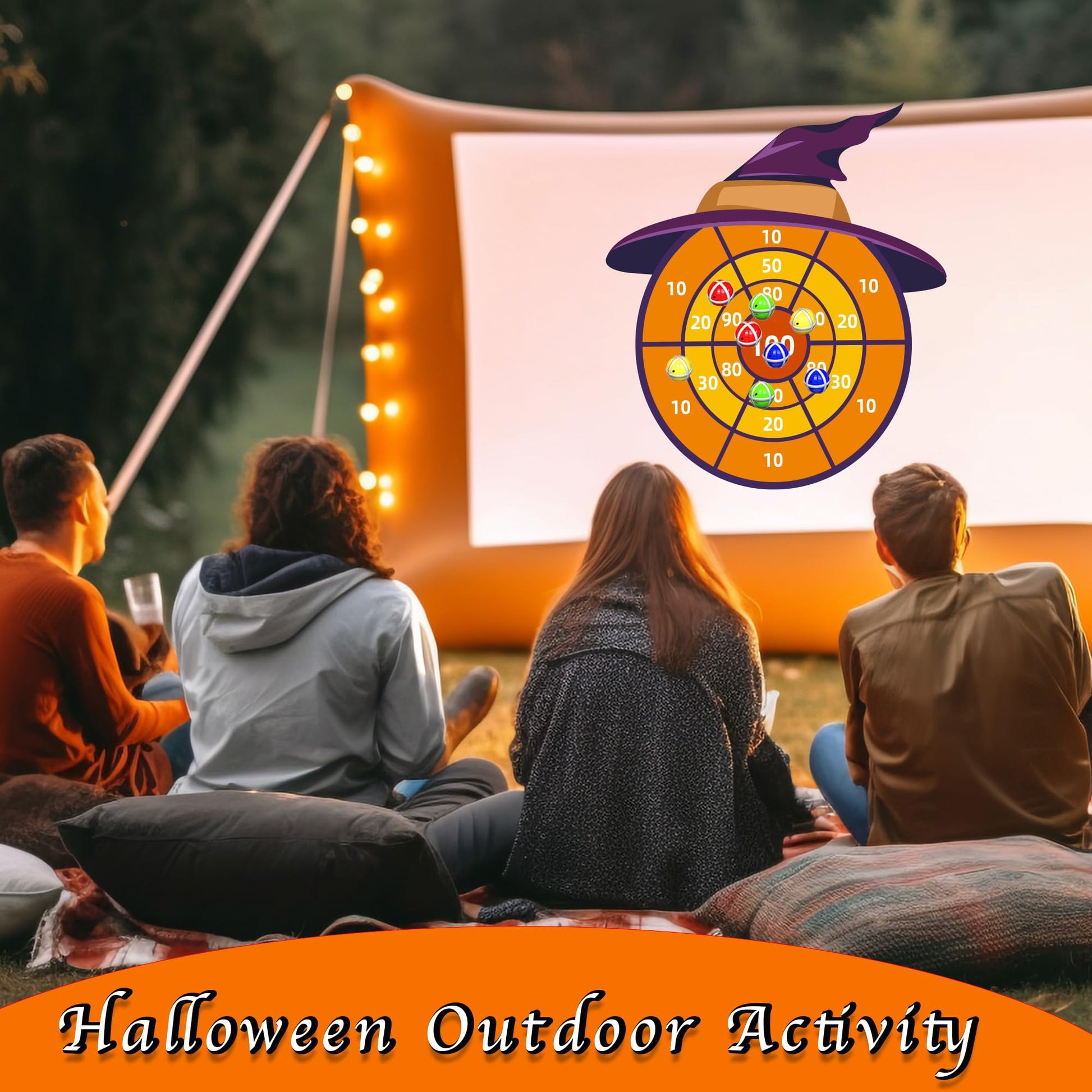 • 【HALLOWEEN GIFTS FOR BOYS GIRLS】30in Halloween witch hat dartboard (with hook), made of high quality soft fabric, durable, and comes with 12 plastic sticky balls with strong stickiness, can be firmly attached to the dart board. Halloween toys dart board game for kids 4 5 6 7 8 9 10 Year Old, indoor or Outdoor Toys for Kids Age 3-10.