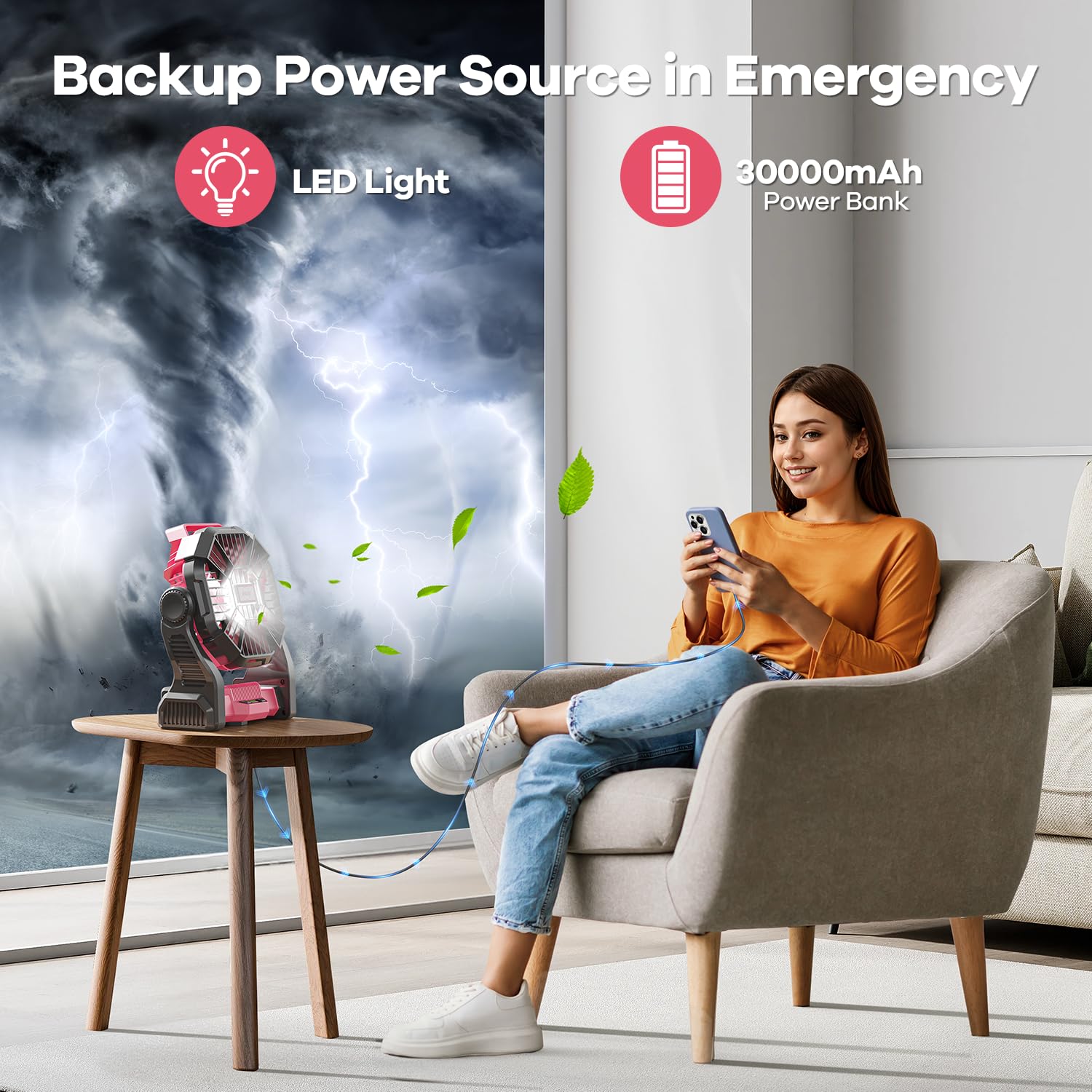 30000mAh Solar Fan with LED Lantern, 10W Solar Panel Rechargeable Battery Powered Camping Fan for Outside, 9 Inch Portable Battery Operated Hurricane Supplies for Picnic, Barbecue, Fishing, Travel