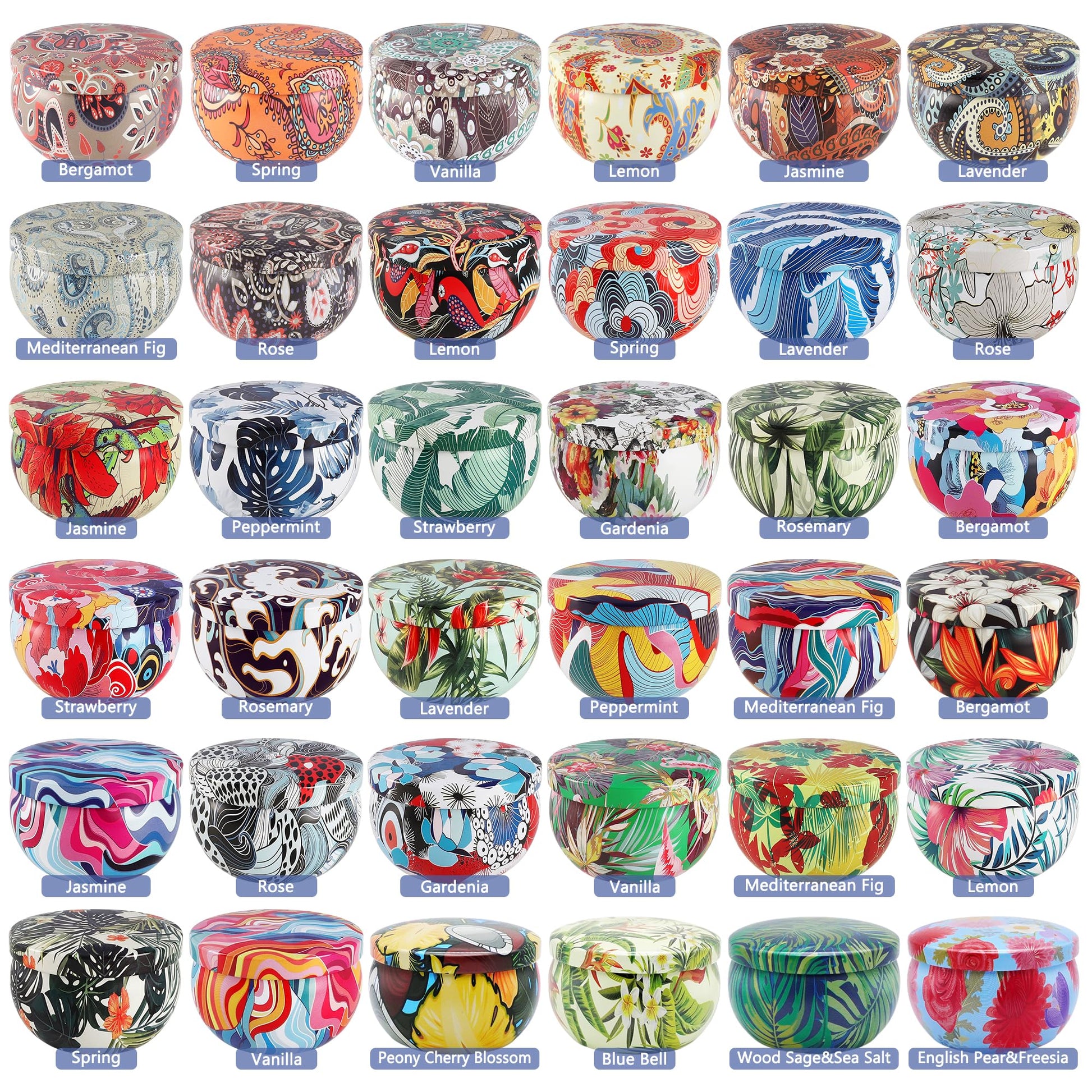 • Classic Fragrance - Scented candles gift set with popular fragrances included: Rosemary, Wood Sage&Sea Salt, Blue Bell, Evening in paris,Peony Cherry Blossom, Peppermint, Rose, Fig, English Pear&Freesia, Jasmine, Vanilla, Gardenia, Spring, Lavender, Strawberry, Bergamot, Mediterranean Fig, Cosmic Speculation Mars, Pine, Lemon, Psidium Guajava, Chamomile, Chocolate&Orange Blossoms, Cinnamon, Velvet Woods