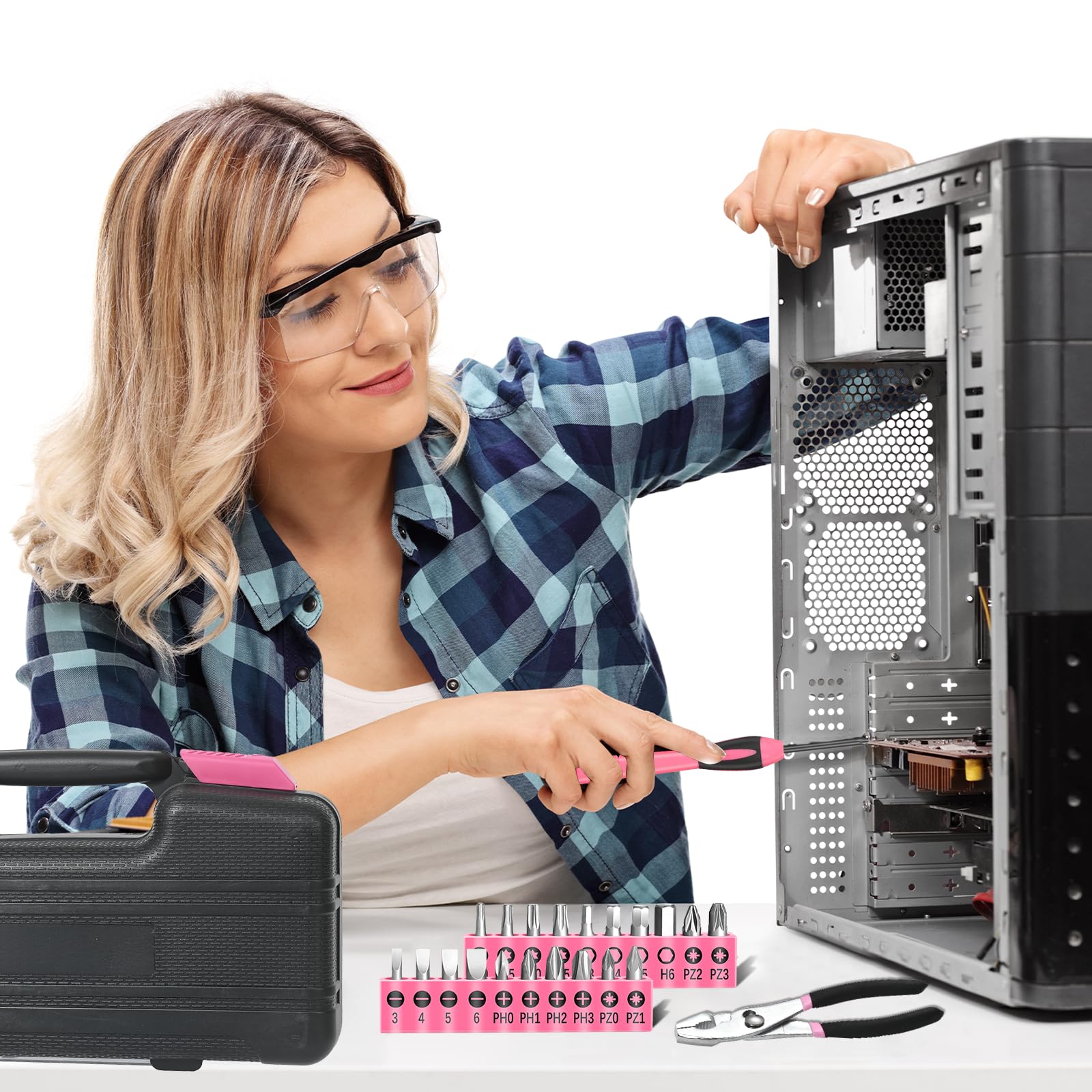 39 Piece All Purpose Basic Household Pink Tool Kit for Women - Small Tool Set with Toolbox Great for Home, Garage, Office and College Dormitory Use