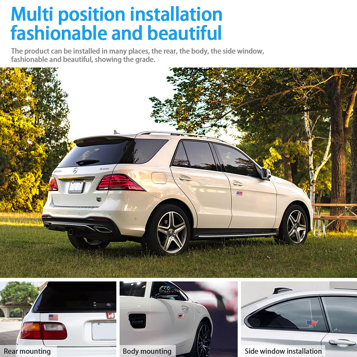 3D Aluminum Alloy American US Flag Decal, 2 PCS 3" X 2" Patriotic Stars Stripe USA Flag Car Stickers for Laptop/Car/Truck/Window/Bumper (Red2)