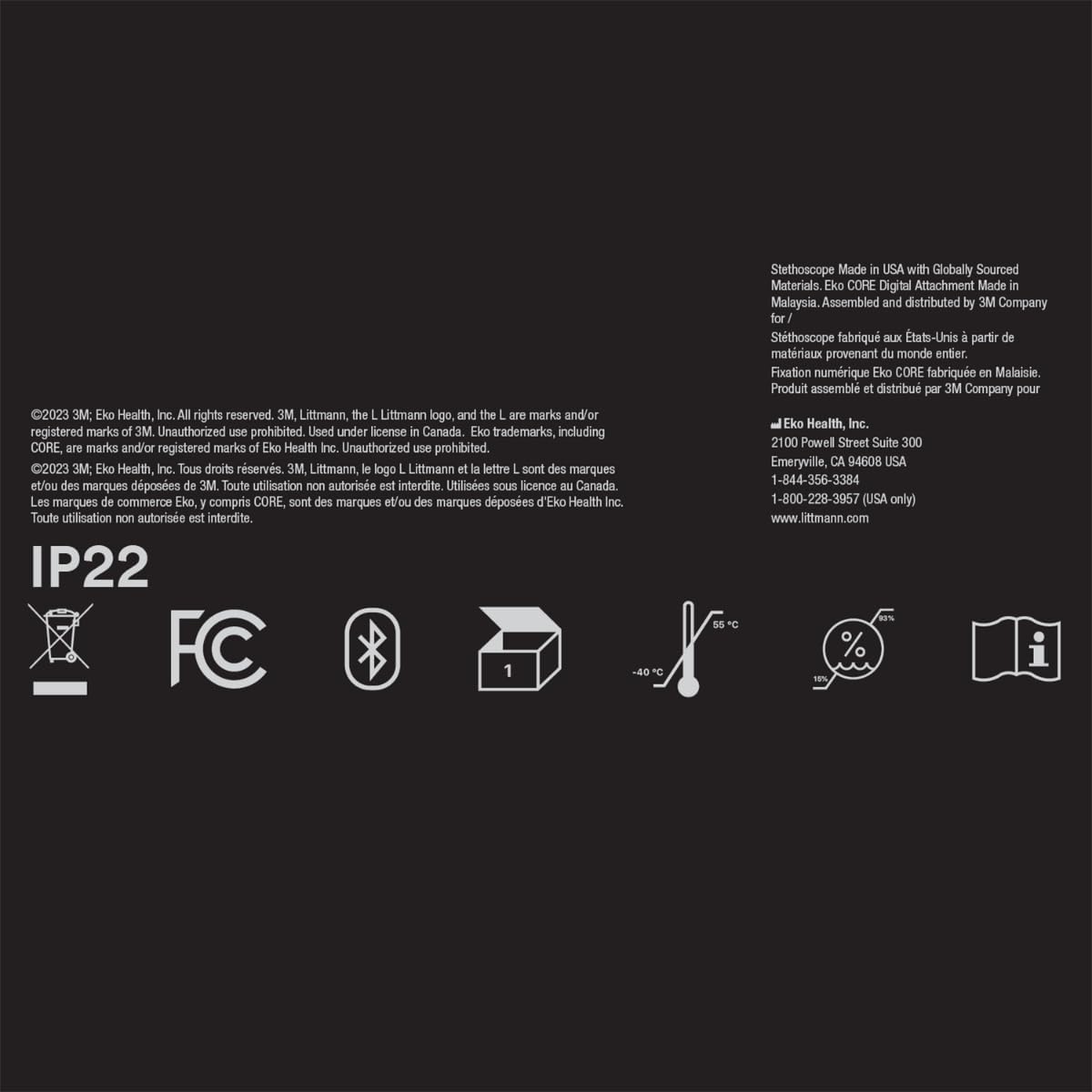 • The 3M Littmann CORE Stethoscope connects with Eko software on a smart device to visualize, record and share data. (Smart device not included. Some features require a subscription)