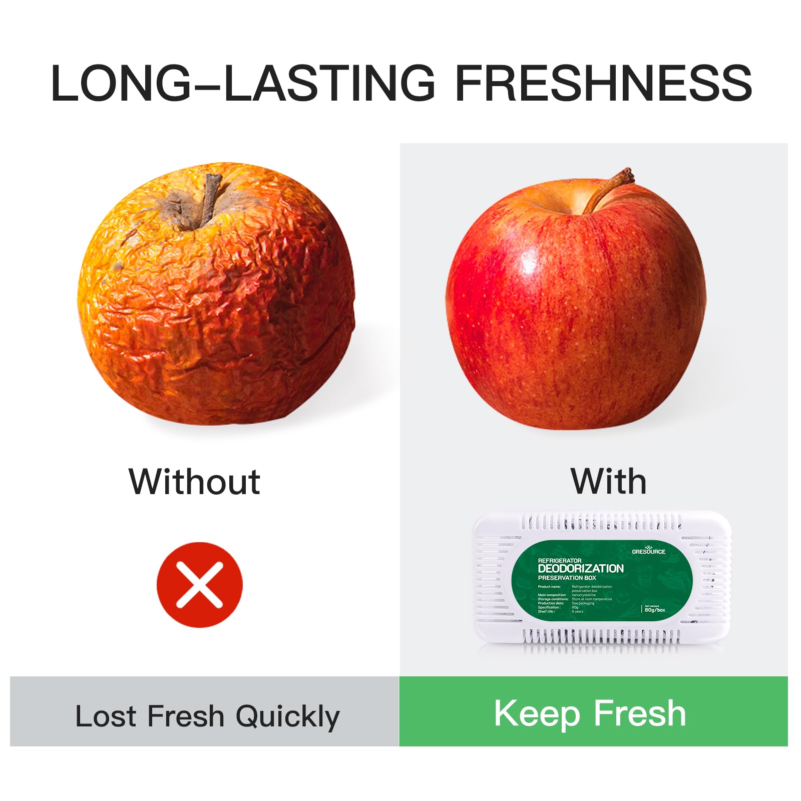• Long-lasting Freshness: This deodorizer features 360° Moisture absorption and deodorization, preventing contamination and flavor transfer.