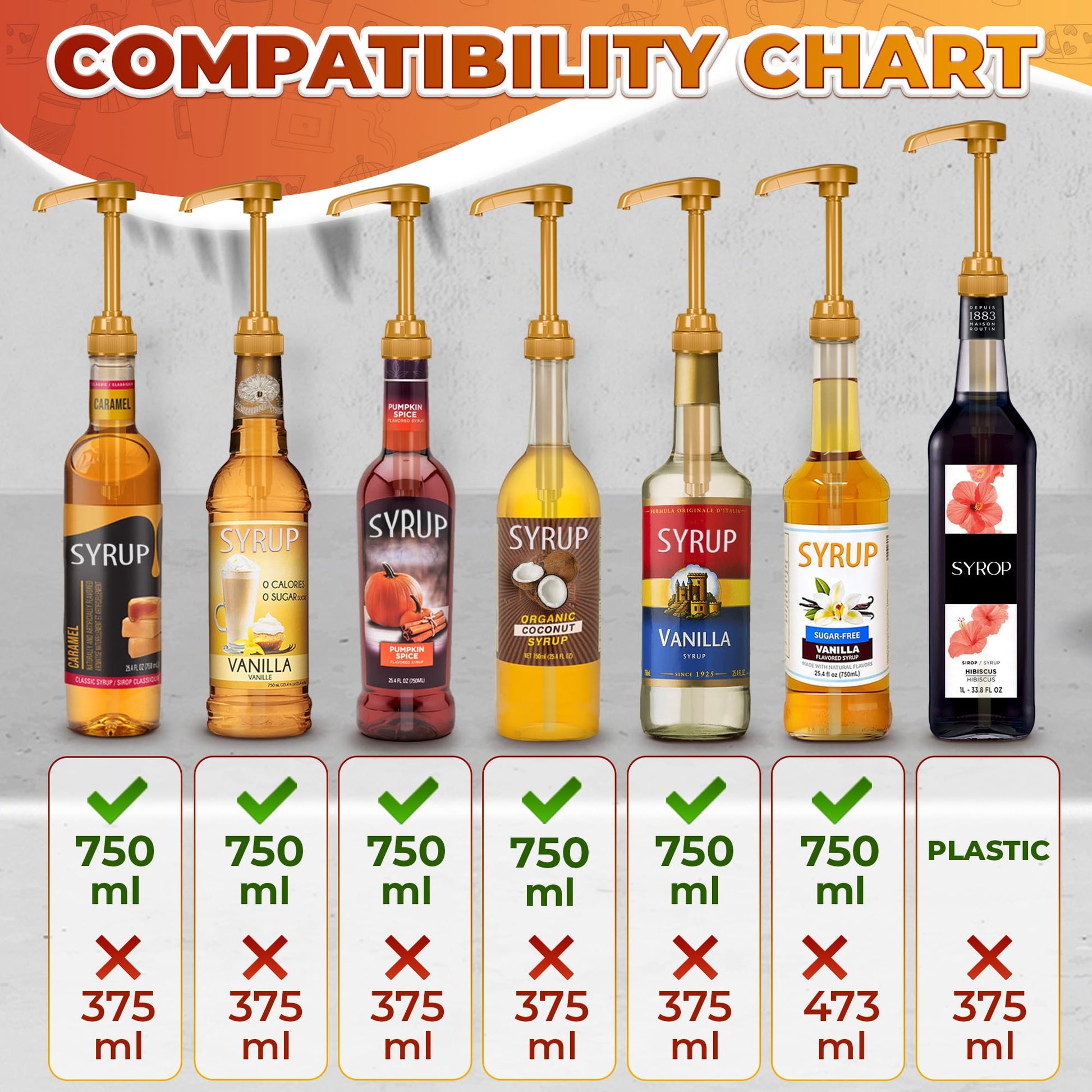 • ☕️Syrup Pumps for Coffee Bar: Designed for 25.4 oz (750ml) bottles, this pump for syrup bottle has an extended straw for a precise fit. ⚠️CHECK PHOTO 6 FOR COMPATIBILITY BEFORE PURCHASE⚠️