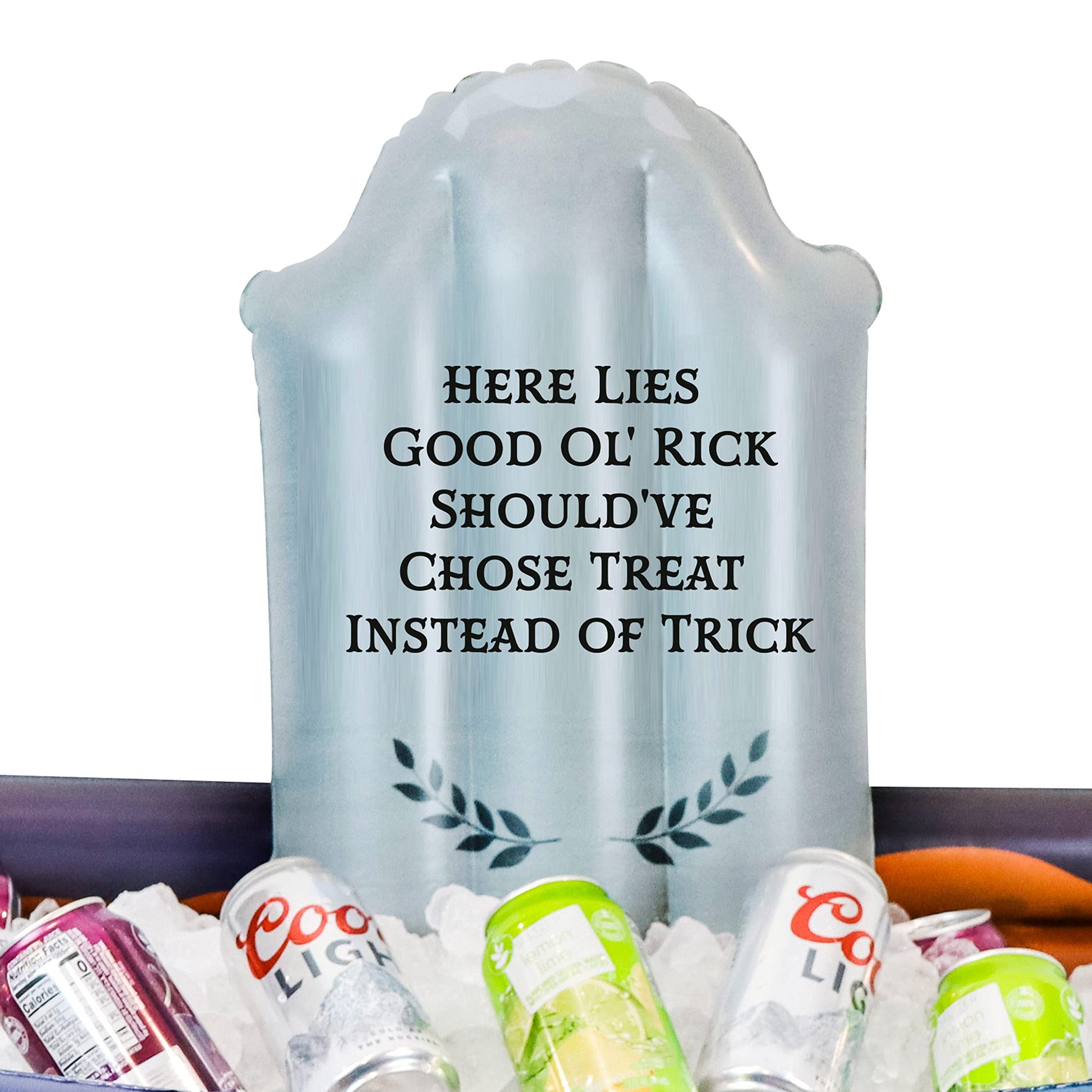 • INFLATABLE COOLER LOOKS LIKE A GRAVE - Set your drinks in ice and forget about your mortal coil while you party with your friends