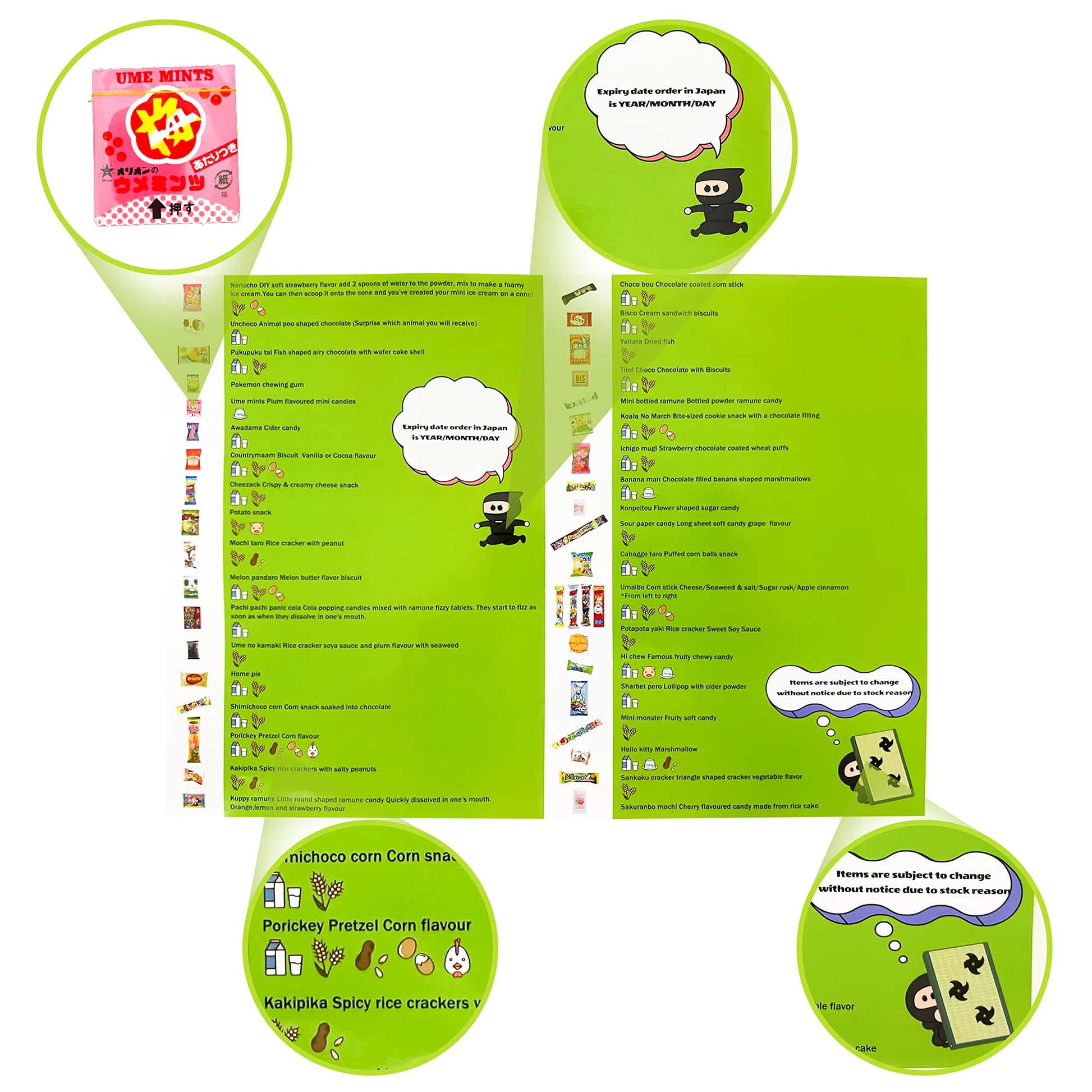 • Our Japanese Snack and Sweets Box includes an English information and instruction pamphlet for your convenience.