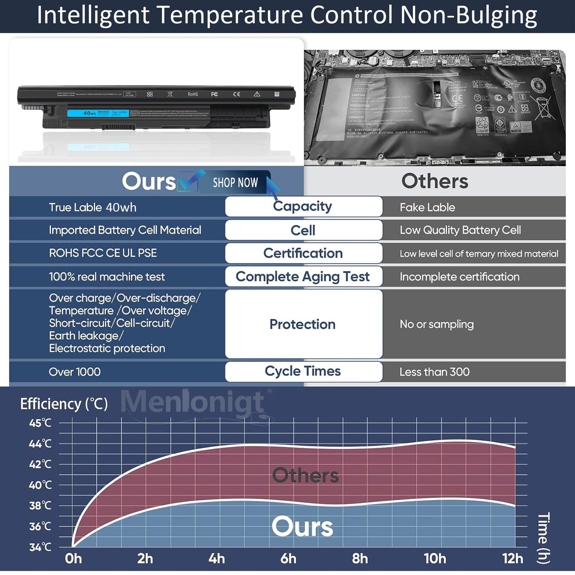 • 【Replacement Dell Inspiron 15 3000 Battery】 Security :dell inspiron 15 3000 battery 100% new from manufacturer, every battery has passed factory testing, grade A cells ensure fast charges and low power consumption, built-in circuit protection ensures both safety and stability. Up to 500 recharge cycles over the life of the battery; Each of our product is CE-/FCC-/RoHS-Certified.