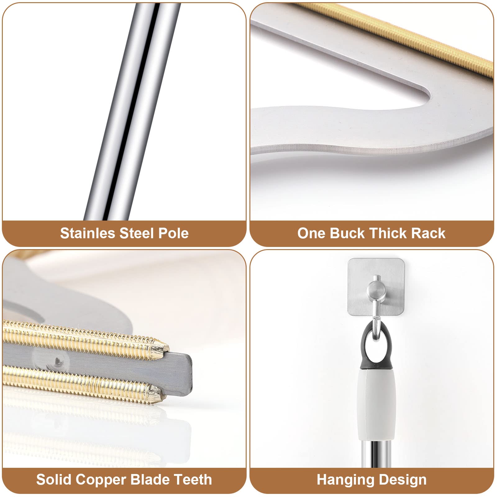 • Adhesive Hooks as Bonus for Hanging & Space Saving -- Two solid traceless sticky hooks are provided as bonus so you can hang the carpet rake for pet hair removal broom on the wall, saving your space and no damage to your wall.