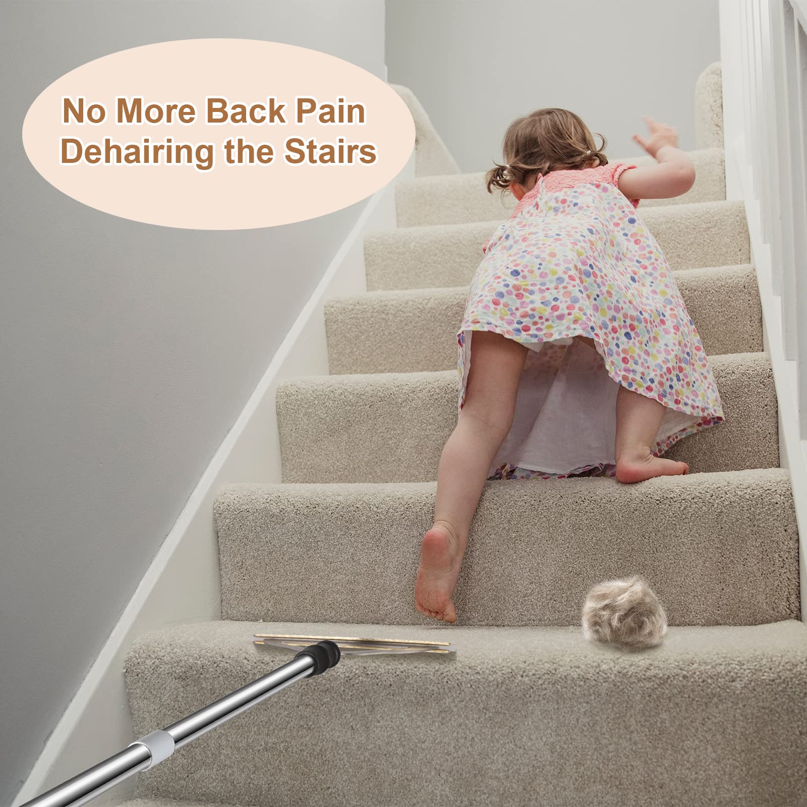 • Adjustable Long Handle, Making Your Cleaning Job More Efficient -- 3 sections of sturdy stainless steel poles with 2 handle length( 33”and 47”) optional to suit your specific cleaning needs: 47”for carpets and 33” for couch. Also this pet hair remover can easily reach under sofas, stairs creases and other hard-to-reach corners without having to bend down.