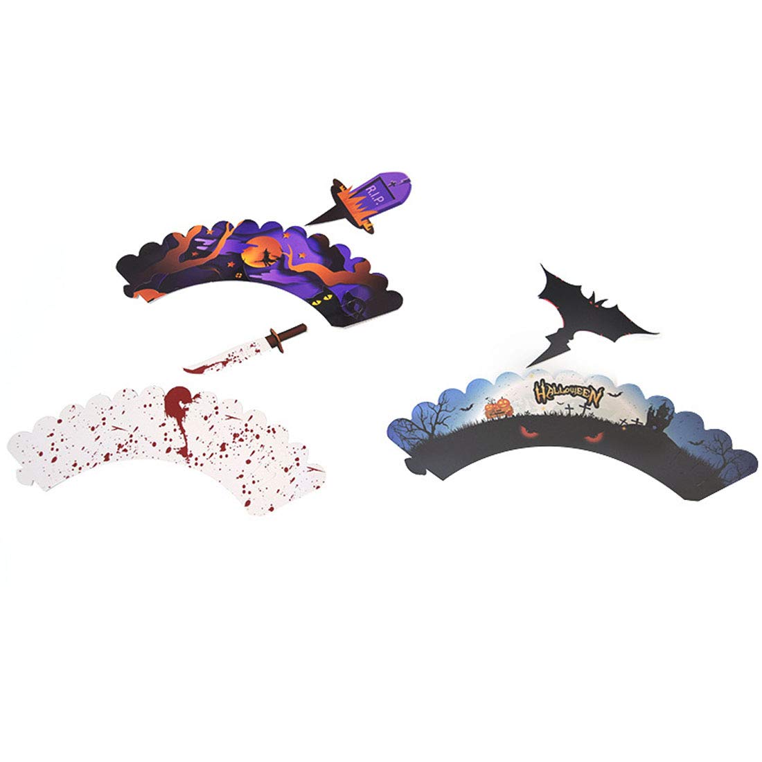 48 Pieces Halloween Cupcake Toppers Cupcake Wrappers Kit for Halloween Cake Decoration