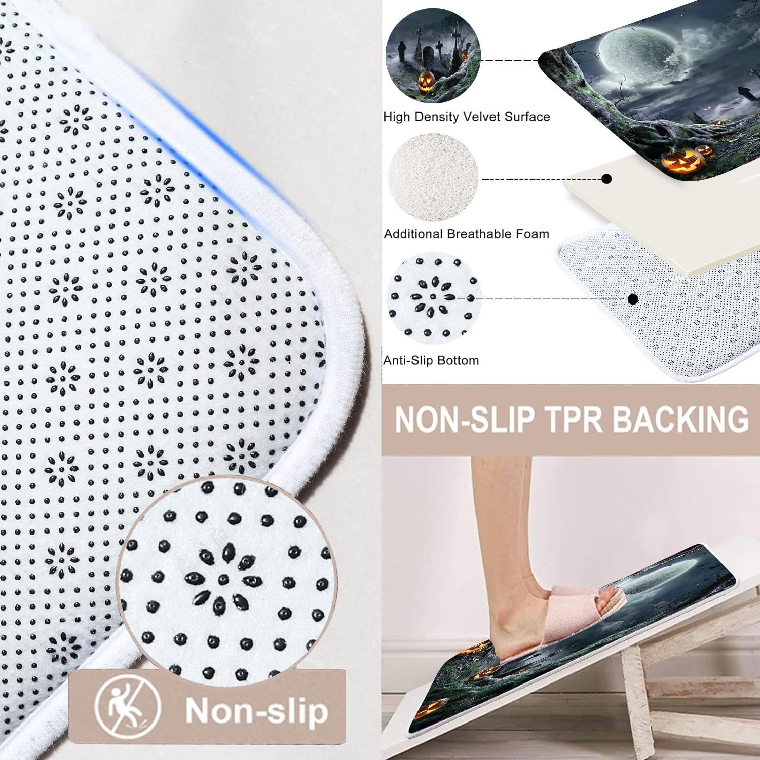 • 【Premium Material】Halloween shower curtain set are made of eco-friendly polyester fabric,which is waterproof and durable, non-toxic and no smell. The non-slip bath mat and U type rug are made of high-quality flannel, skid-resistant backing, comfy and skin soft, colorfast and durable, safe for your family