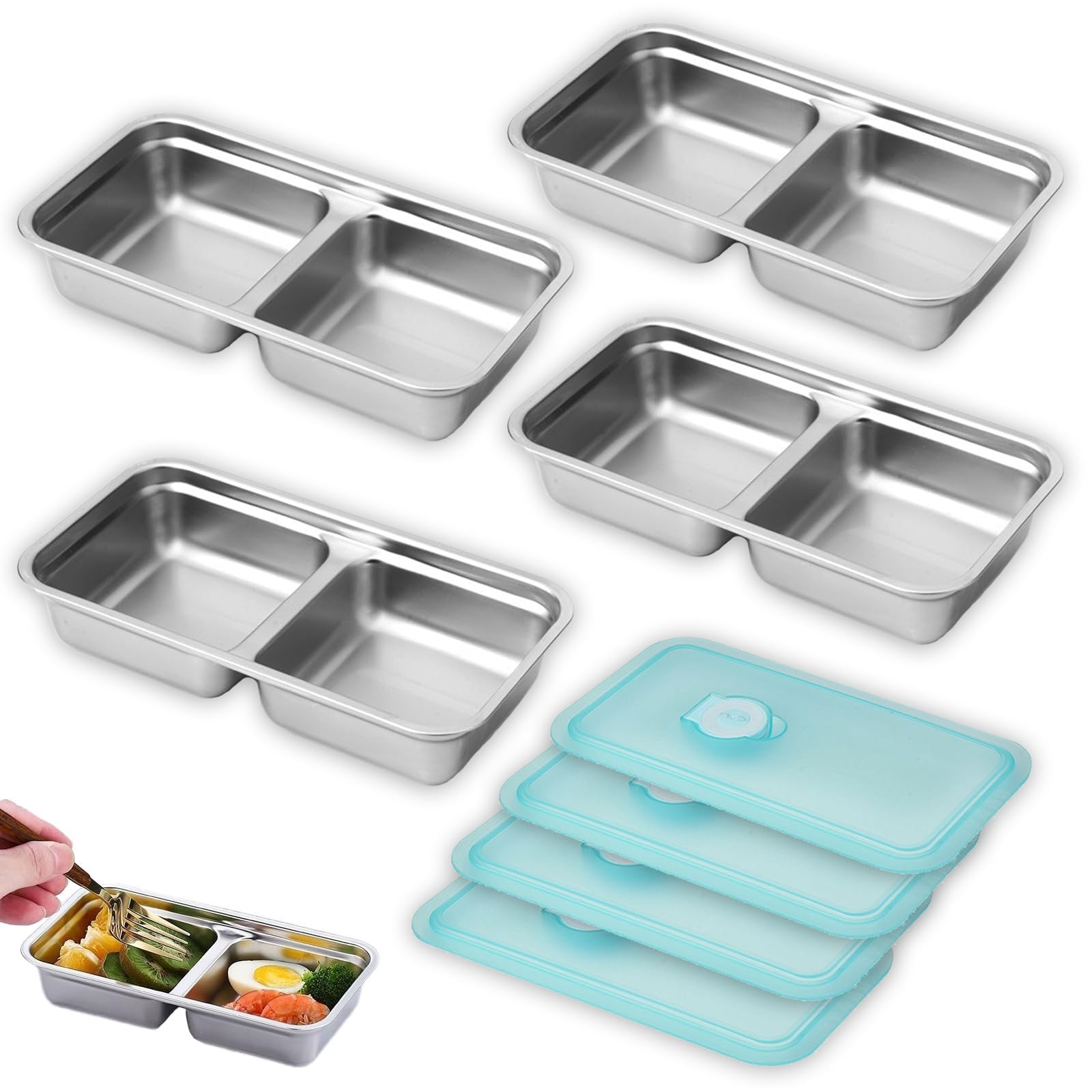 4PCS Reusable Snack Containers with Lids - Stainless Steel Bento Box - Stainless Steel Food Storage Containers - Dishwasher and Suitable for Kitchen Snacks Dips Take Out Travel and Outdoor Camping