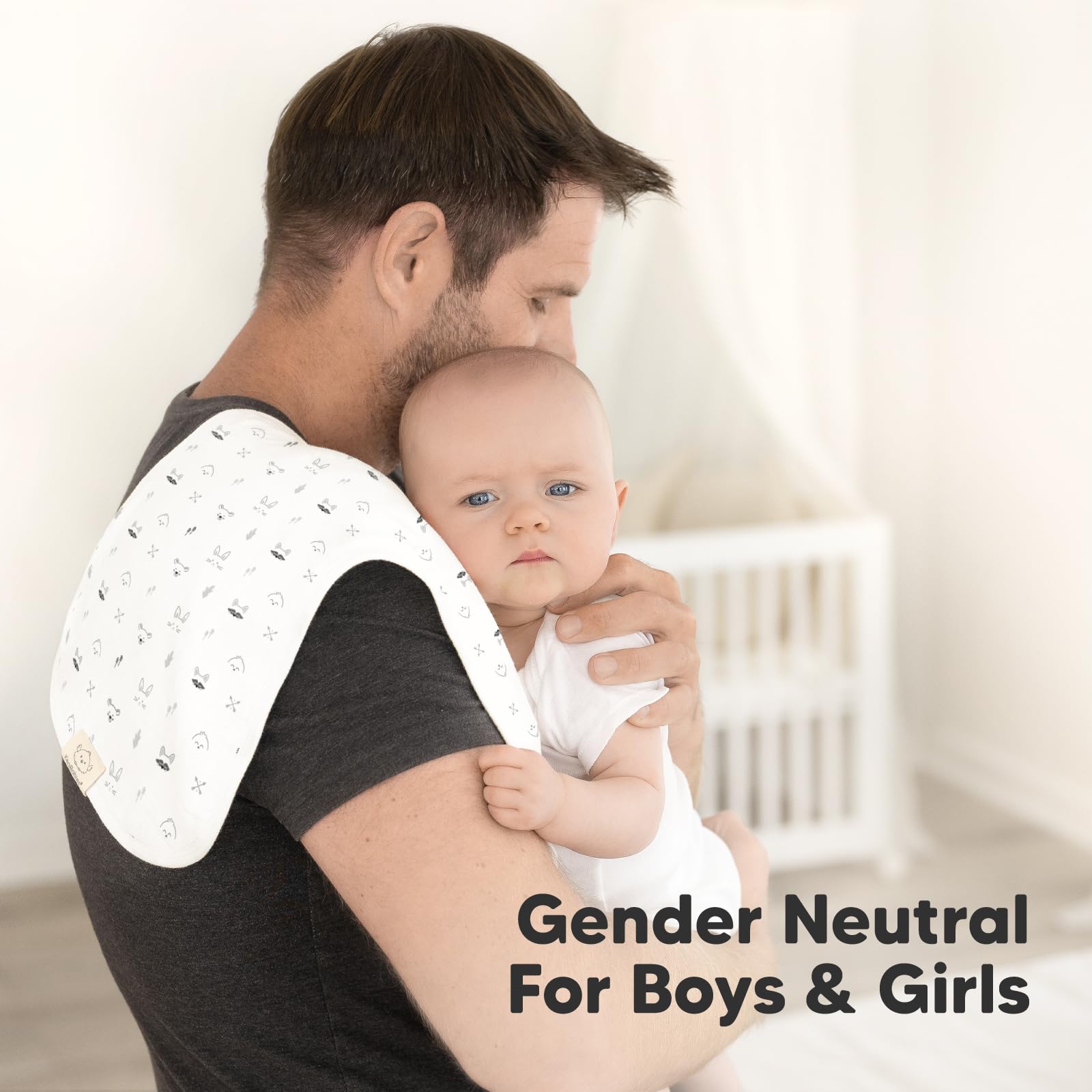 • Stylish and Gender Neutral - Our absorbent burp cloths are designed to seamlessly match with any outfit for baby girls and boys. Embrace the essential clean look with our baby burp cloths. One of the must-have baby essentials.