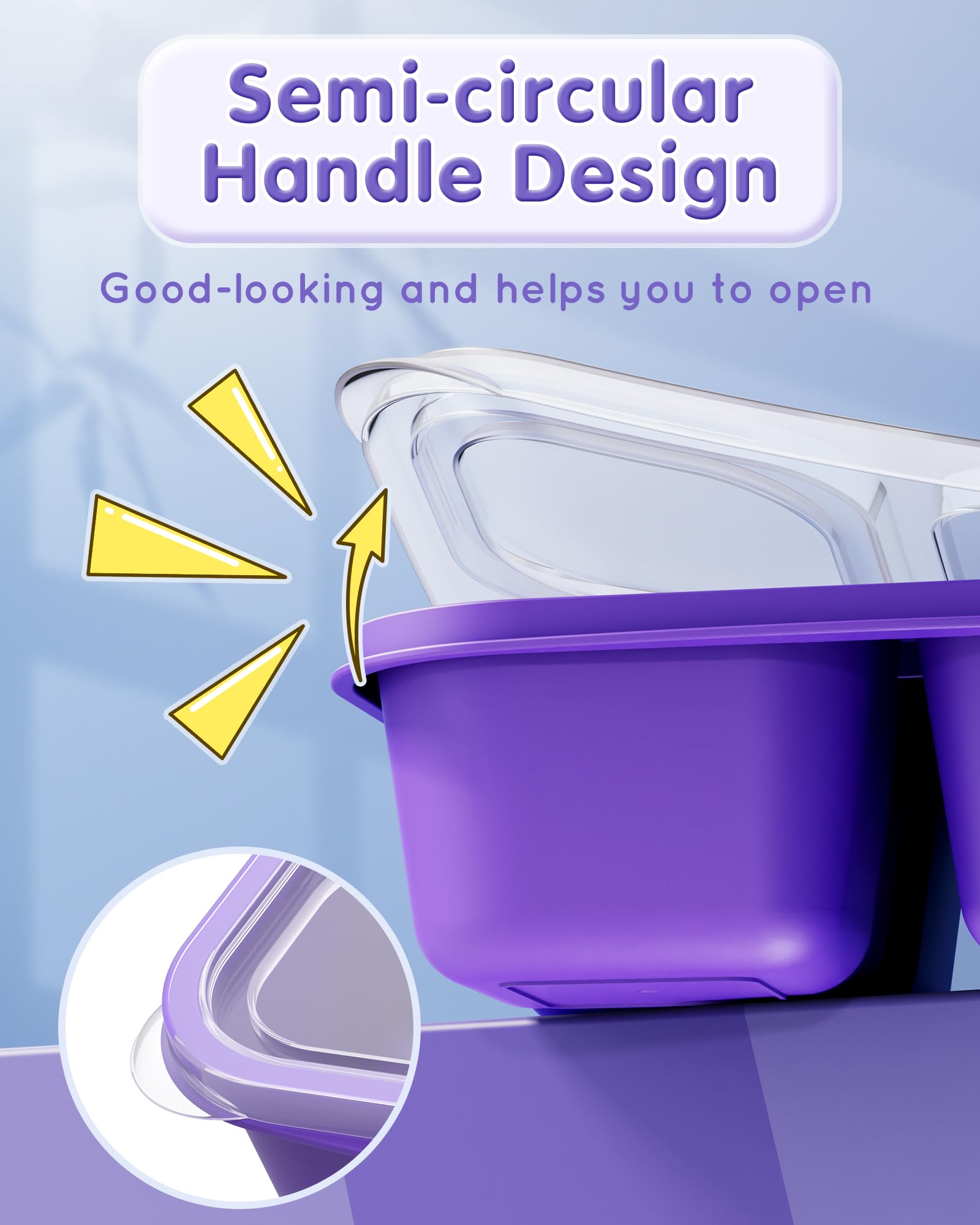 • 【Microwave/Dishwasher/Freezer Safe】Divided food storage containers with lids can be heated in the microwave, washed in the dishwasher, and stored in the freezer. (Note: Don't close the lid when microwaving.)