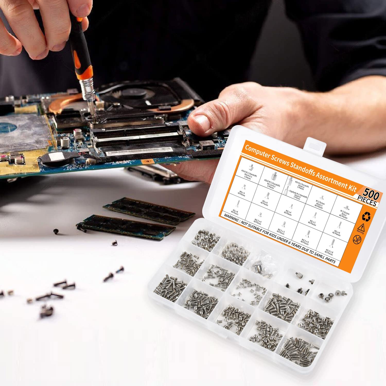 • Well Packaging. Each model of screws is placed inside a compartment and clearly labeled, making it easy for you to use and store at any time. The 500pcs pc screws kit contains a variety kind of screws to help you find the right one for the pc building & repair needs.