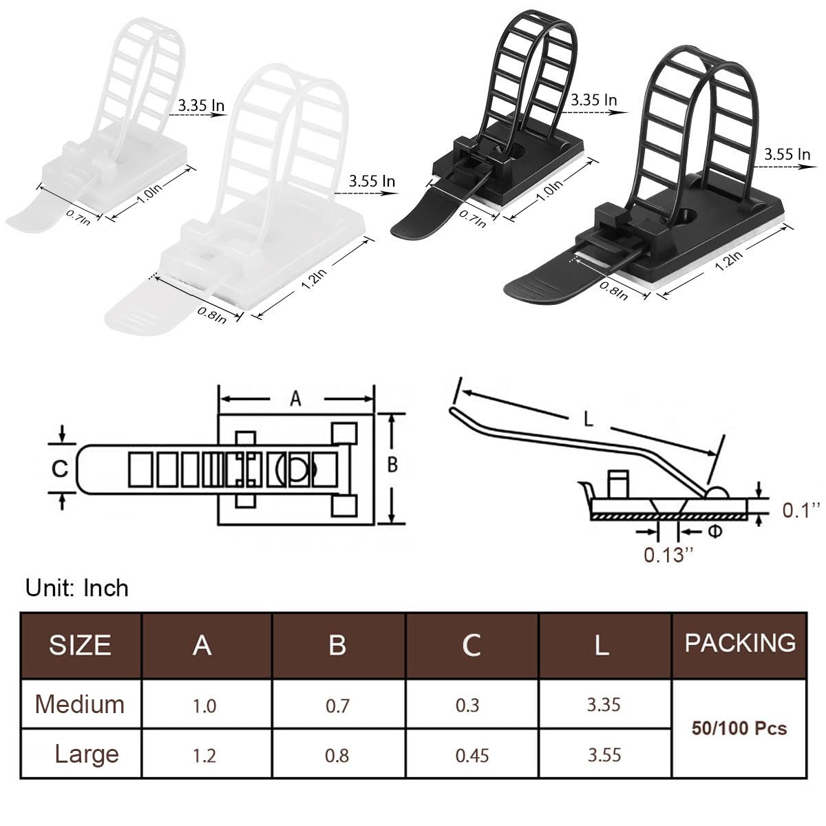 • 【STRONG FIXATION】- Made with high quality toughness nylon material, solid, durable and heat resistant. As well, it comes with an ultra strong 3M adhesive tape on the back, of which the stickiness is 50% stronger than normal cheaply made tape backing. What's more, extra screw hole and 50PCS screws included in the package allow you to fix the base stably on uneven surface or secure large sized cables and wires