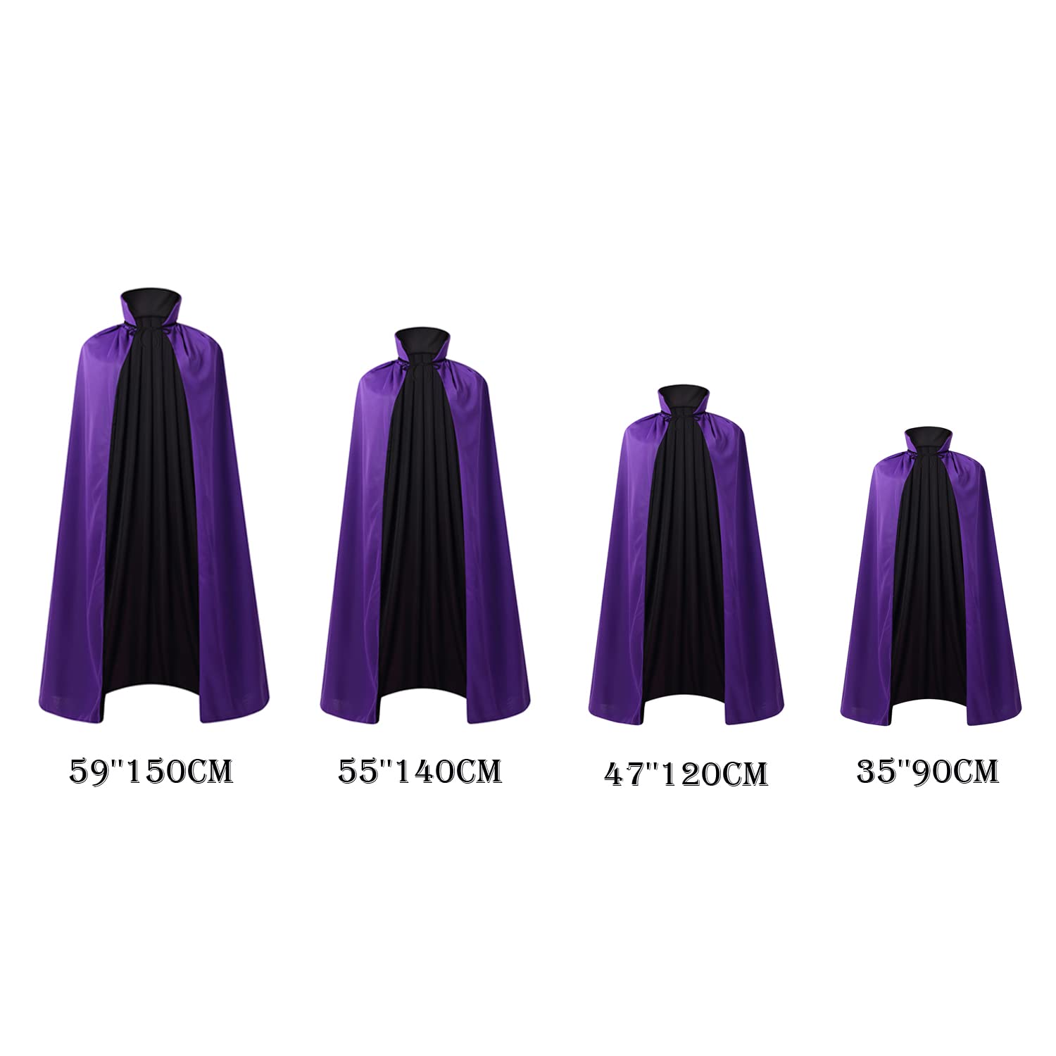 • Reversible Cape: It can be worn in both side -- one side is black and another purple, for which it can be used for multiple costumes. Ribbon to tie is sewed on well and the length is perfect.