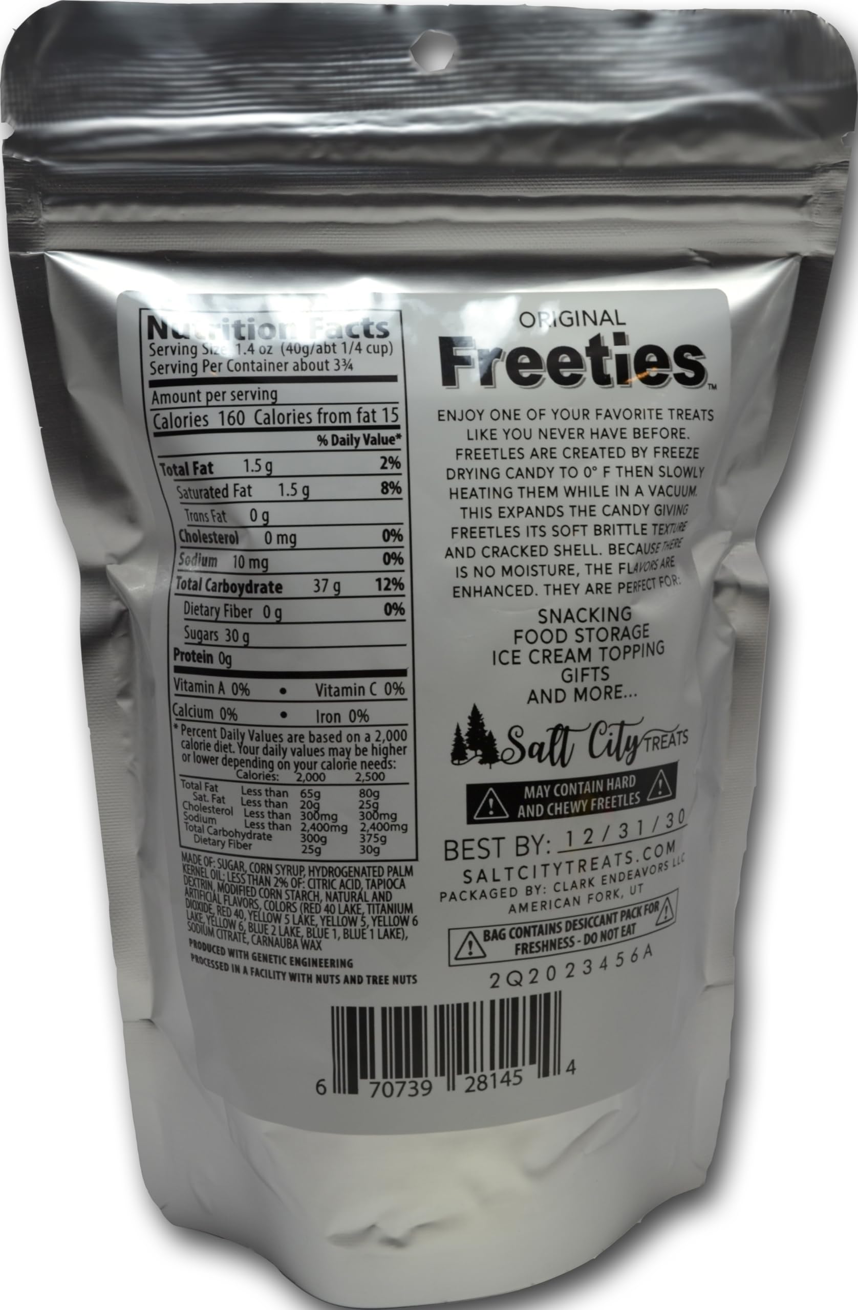 Details: Produced with genetic engineering. Enjoy one of your favorite treats like you never have before. Freetles are created by freeze drying candy to 40 degrees F then slowly heating them while creating a vacuum. This-Gives Freetles its brittle texture and cracked shell. Because there is no moisture the flavors are enhanced. They are perfect for. Snacking food storage mixed drinks ice cream topping gifts and more