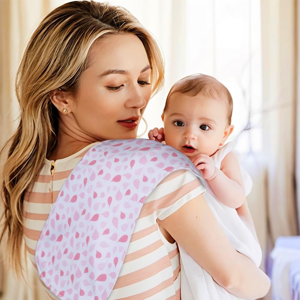 • 【CURVED DESIGN】The burp cloths is designed curved in the middle, can do better job in fitting your shoulder, very easy to use. Each burp cloth measures approximately 18 x 9 inches, making it the perfect size to protect your shoulder from those lovely spit ups.