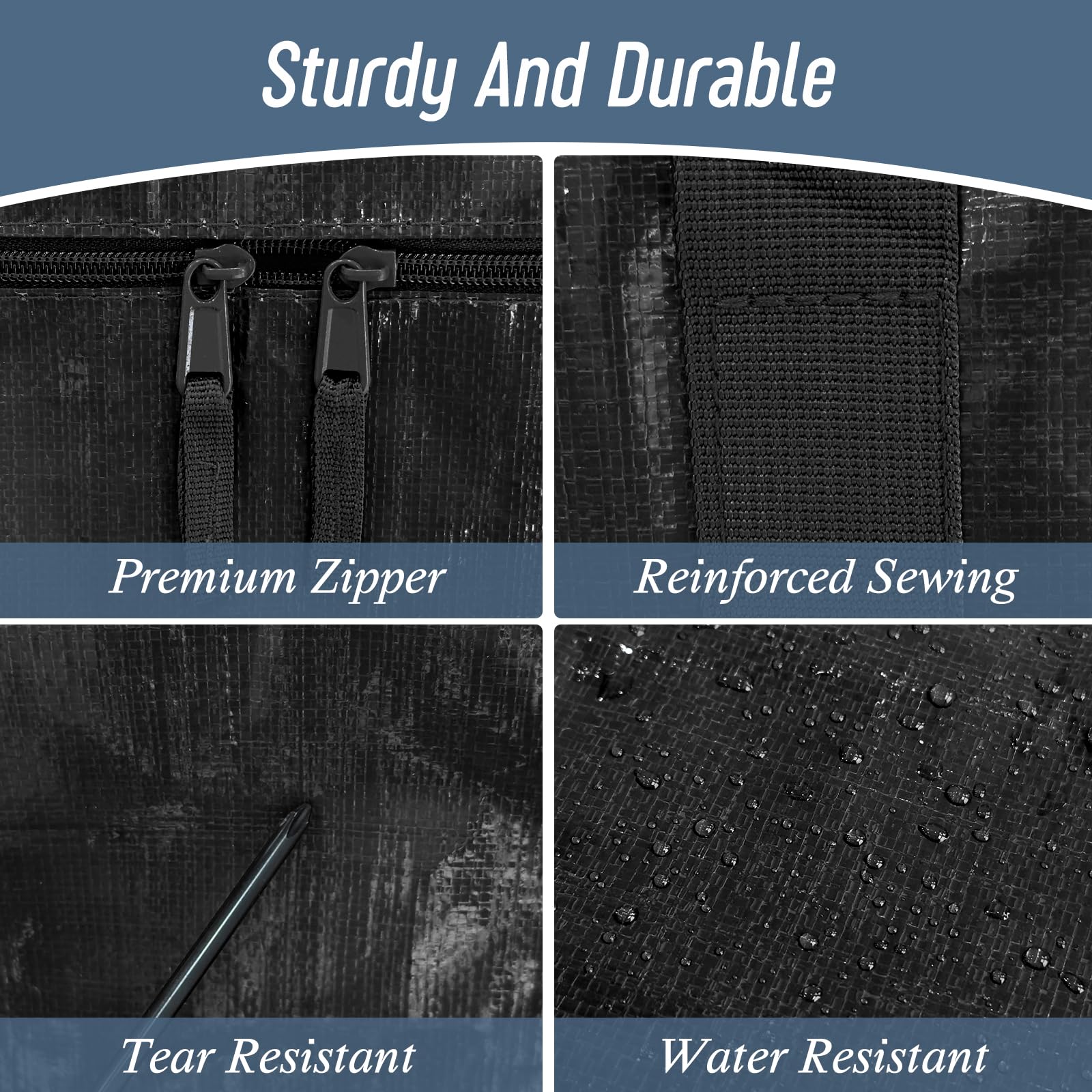 6 Pack Extra Heavy Duty Large Moving Bags with Strong Zipper & Comfortable Handles, Sturdy & Durable Clothes Storage Bags Totes Bins, Packing Moving Boxes for College Supplies, Black