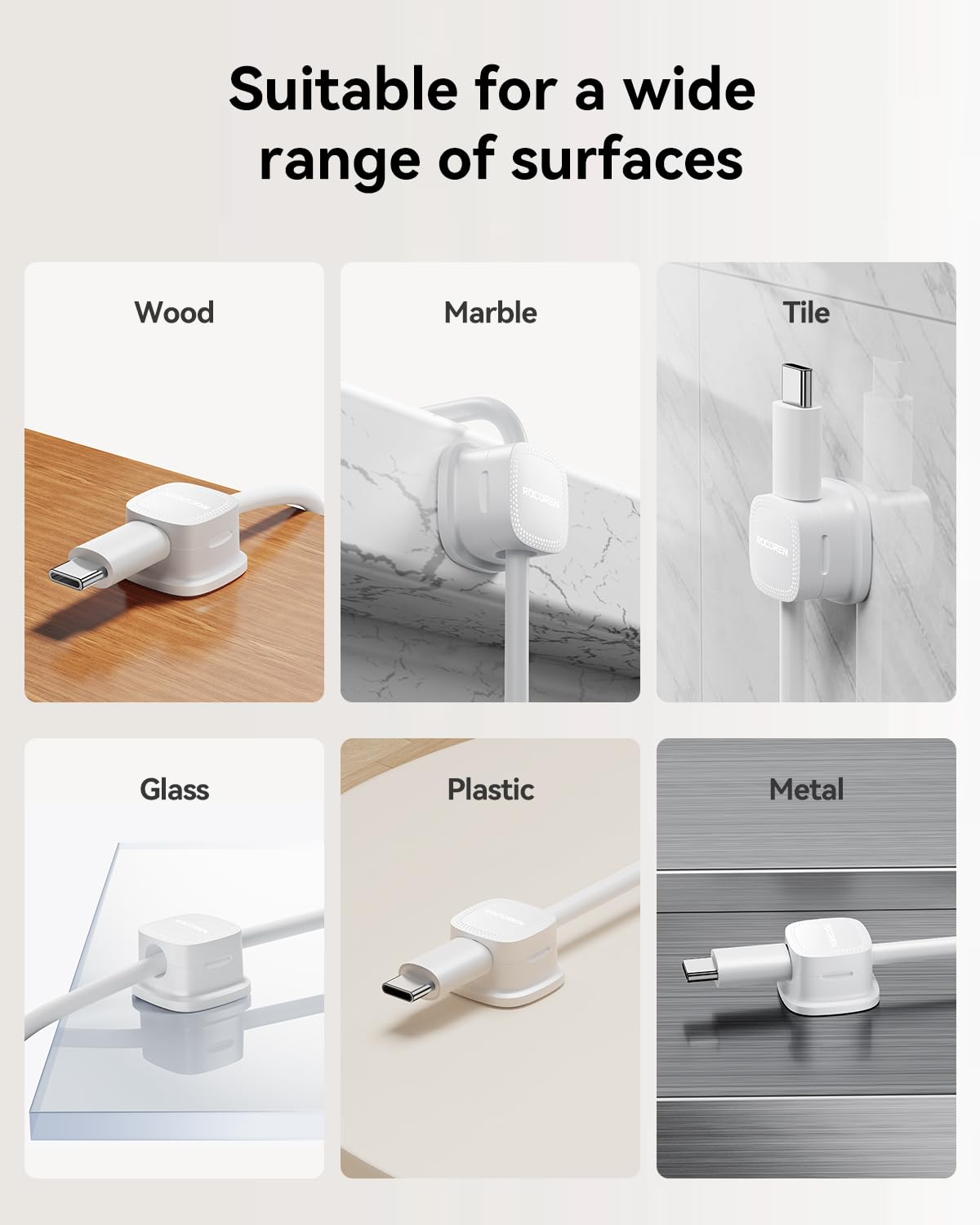 6-Pack Magnetic Cable Clips Cord Organizer-Cable Smooth Adjustable, Rocoren Desk Cable Management Accessories,Cable Holder Clips Wire Holder Keeper for Desktop,Nightstand,Wall,Home Office,Phone,Car