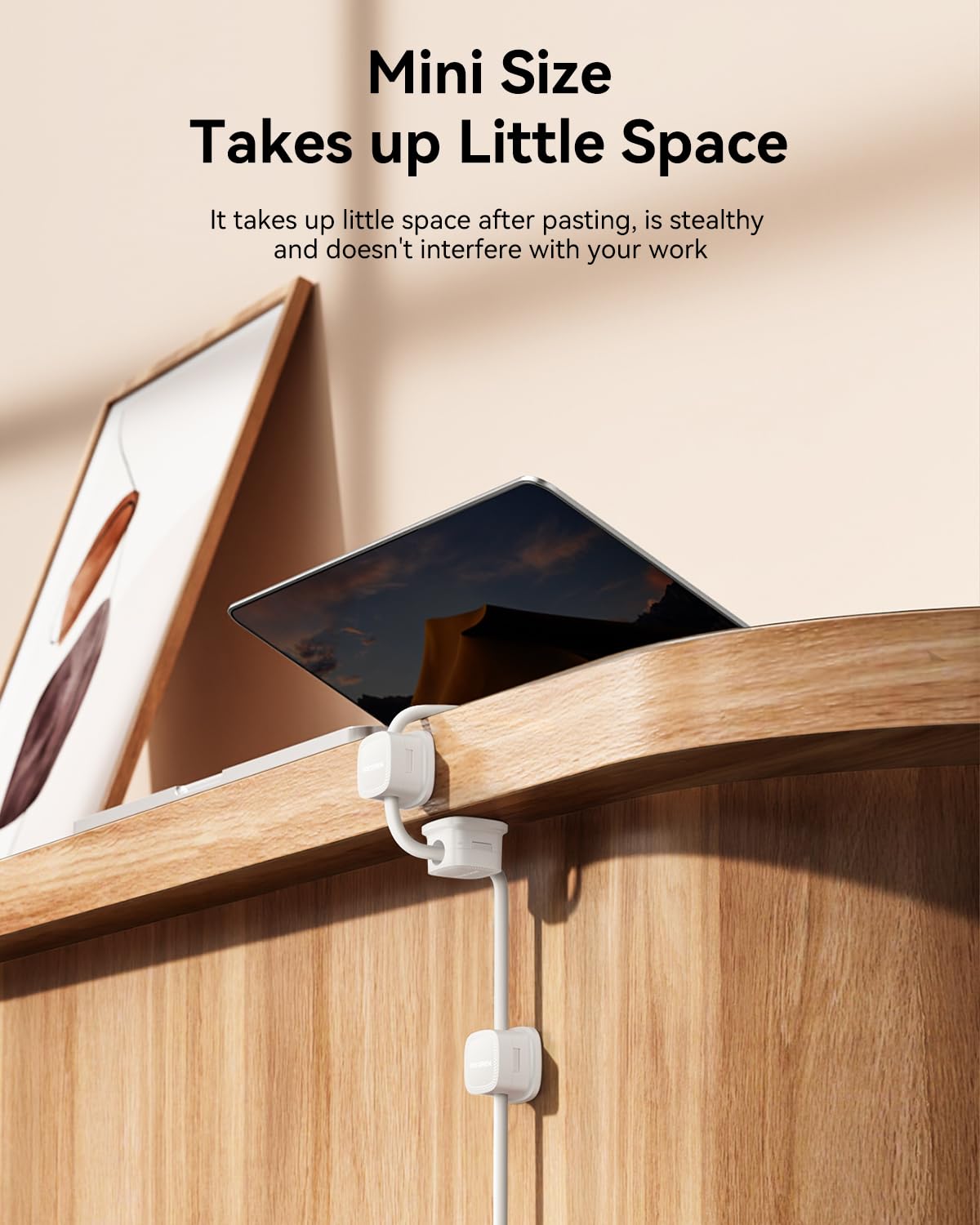 • Super Adhesive:The cable management Equipped with Upgrade Acrylic Adhesive, the adhesiveness is increased by 300% compared to ordinary 3M. It firmly adheres to smooth surfaces such as wooden tables/glass/ceramic tiles, and does not leave any residual glue after removal. Each box comes with a Reusable Adhesive Pad, which extends the service life and is more environmentally friendly and economical.