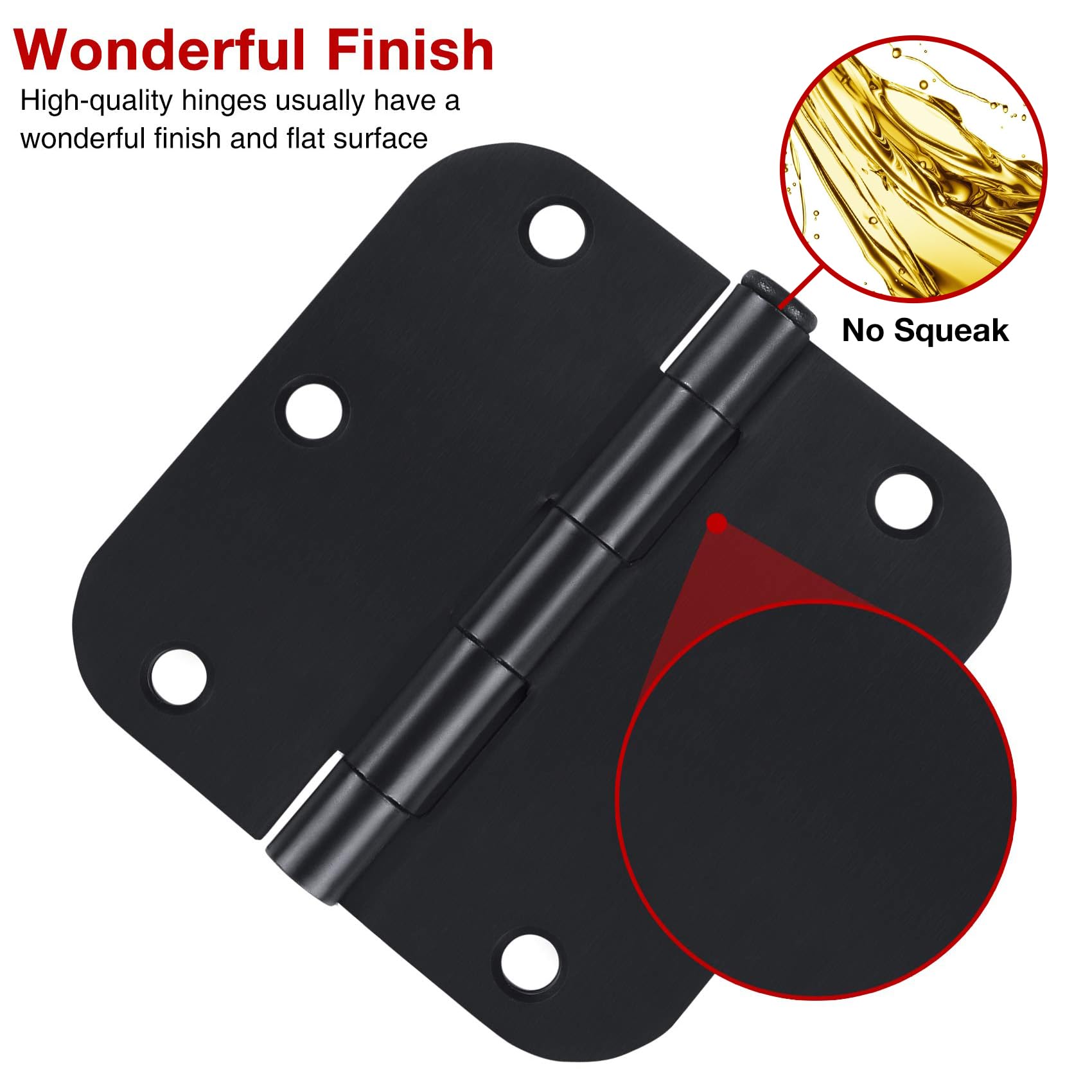 6 Pack Matte Black Interior Door Hinges Round 3.5" x 3.5 Inch 5/8" Radius Heavy-Duty Mat Hinge for Doors Standard Bedroom Work Office Door Hardware Removable Pin,Farm,Shed,Gate,Greenhouse Vent Window
