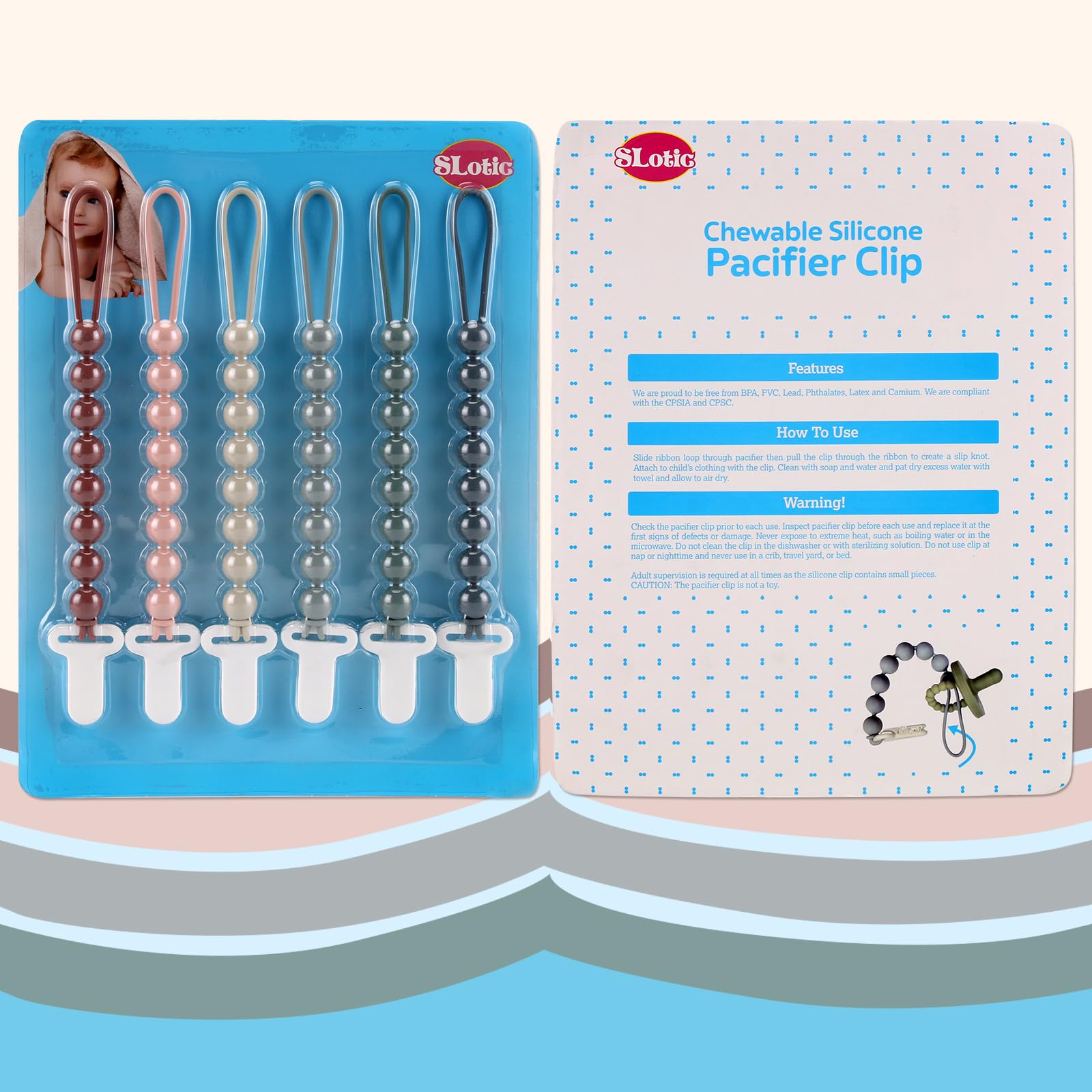 6-Pack Silicone Pacifier Clips for Babies, Safe Teething Beads, Rust-Free Holders, Baby Boy and Girl Essentials, Newborn Must-Have Accessories, BPA-Free