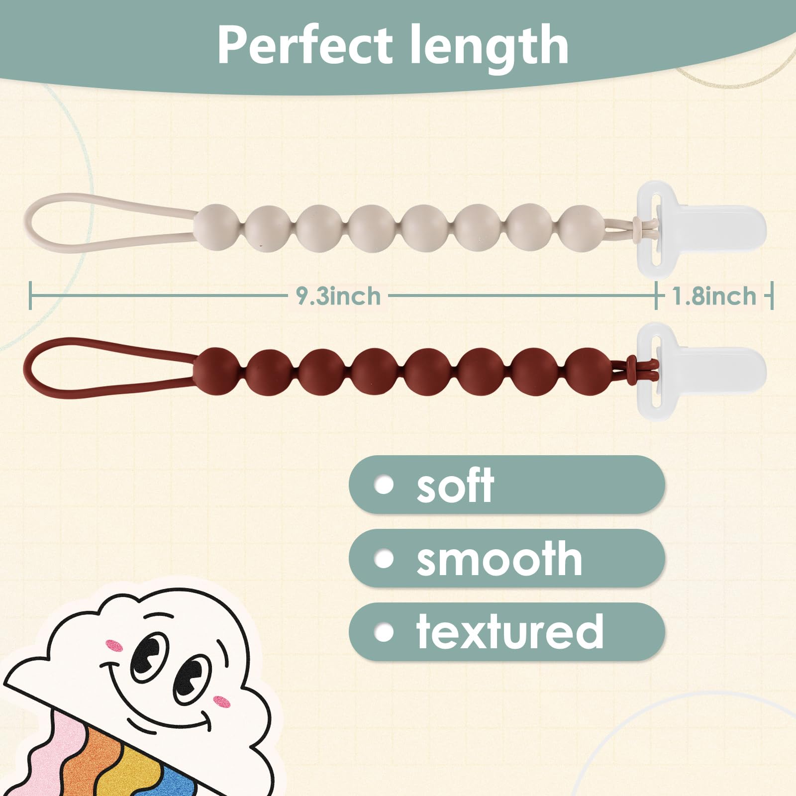 • Enhanced Baby Essentials for Daily Convenience - Simplify your parenting routine with our premium silicone pacifier clip. Designed to keep pacifiers clean, accessible, and secure, its one-piece bead construction eliminates choking hazards for ultimate safety.