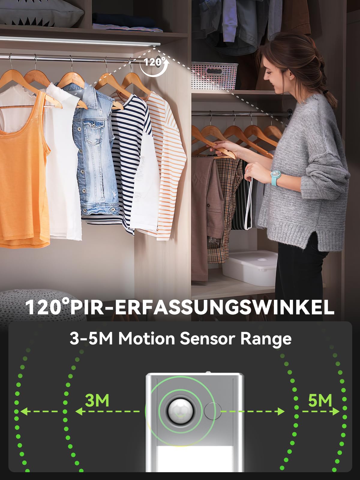 • Gentle and eye-friendly lighting: Unlike other cabinet lights on the market, this light has an internal reflector that creates soft and glare-free lighting. The 120° wide angle and sensitive motion detection area make it particularly suitable for corners that do not require continuous lighting.