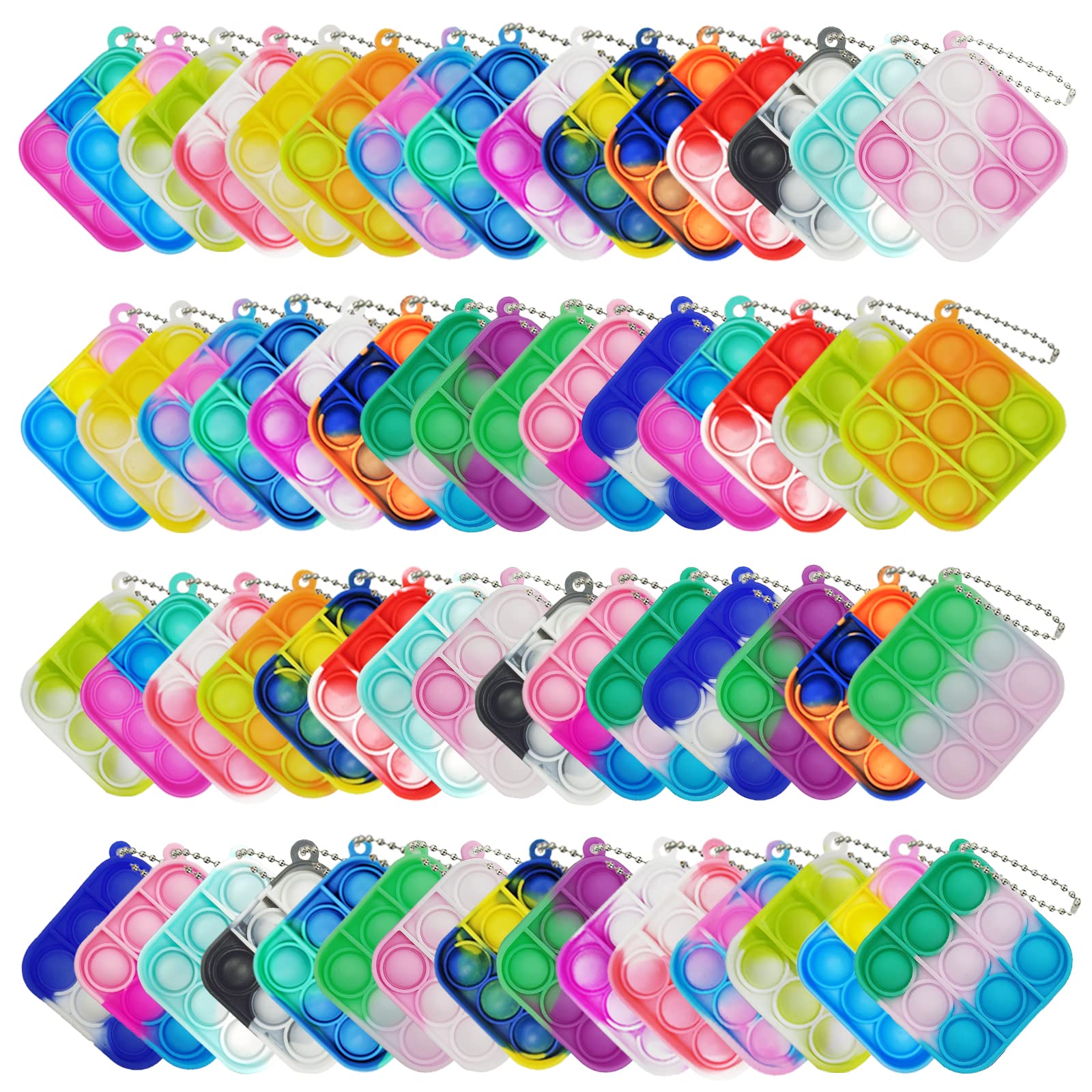 60 Pcs Mini Pop Bubble Fidget Toys for Party Favors, Small Silicone Pop Keychain Bulk for Classroom Prizes,Goodie Bag Stuffers Christmas Valentine Gifts for Kid Student