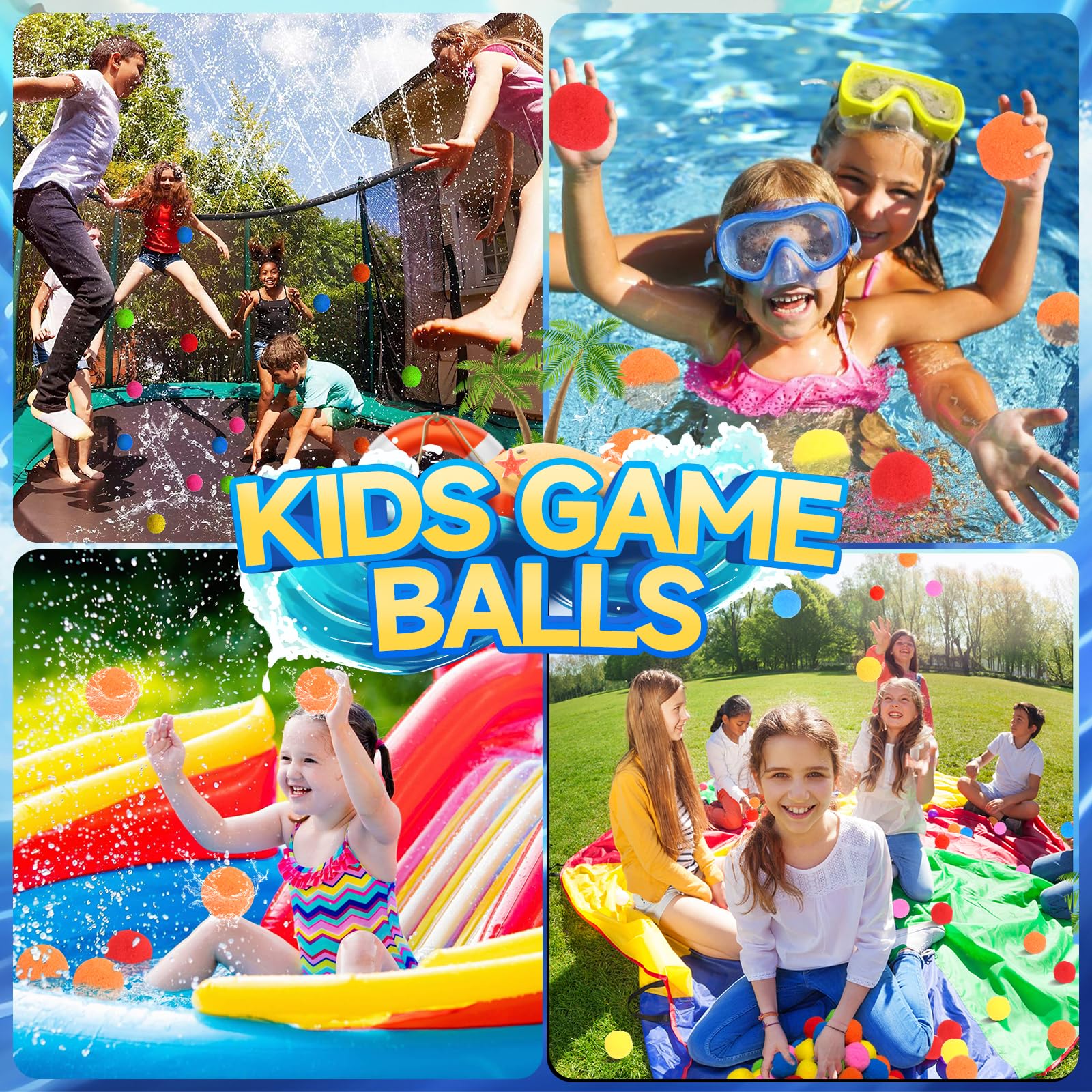 • Summer Fun Water balls: These sponge balls can be used in many places,such as swimming pool, sprinklers for trampolines, at waterparks, the beach, inflatable pools, or just in the backyard with a hose or kiddie pool, they also can be use as toys for pet dogs and cats. Unlike normal latex water balloons, you don't have to take your yard to get up all the little bits of rubber balloons and use them OVER & OVER.