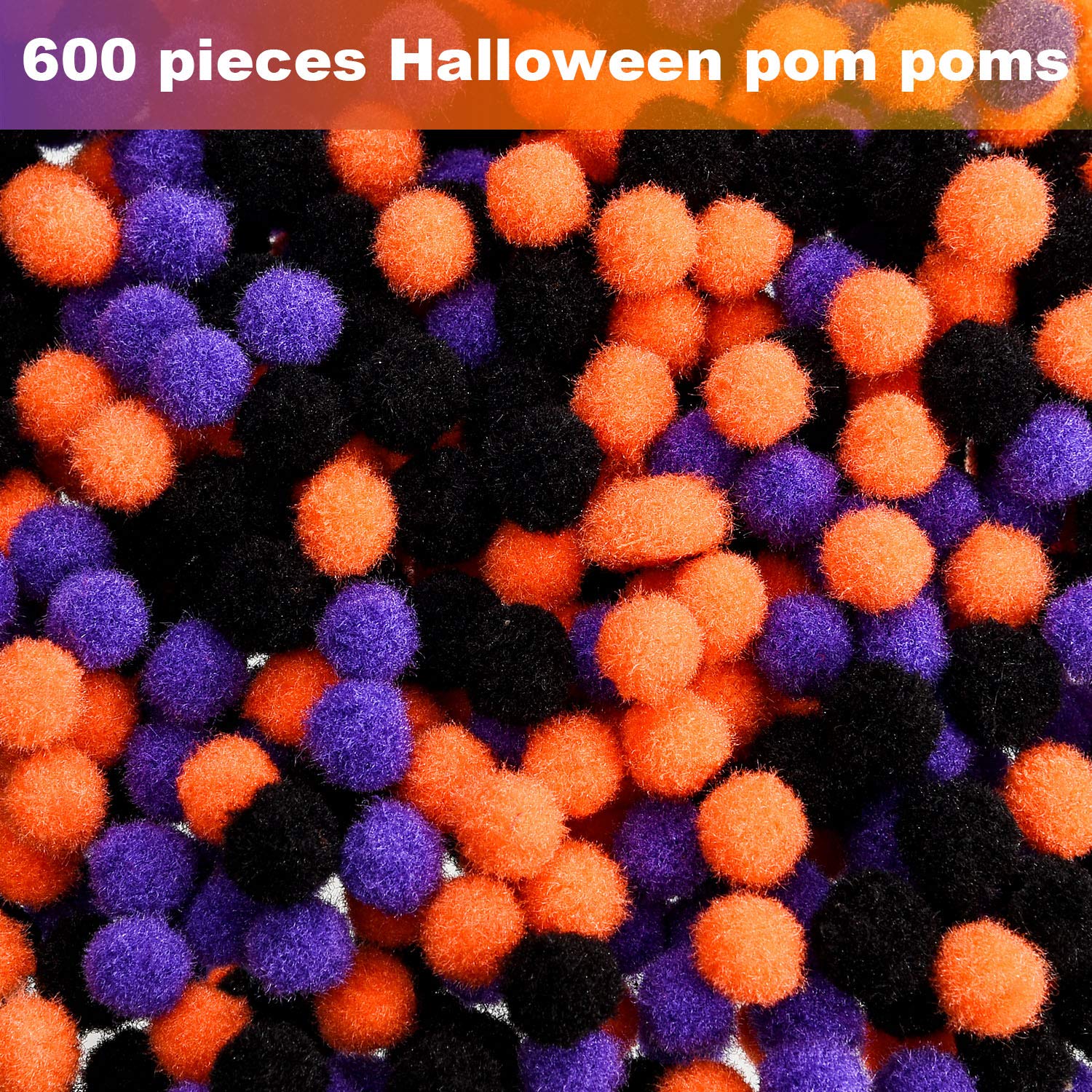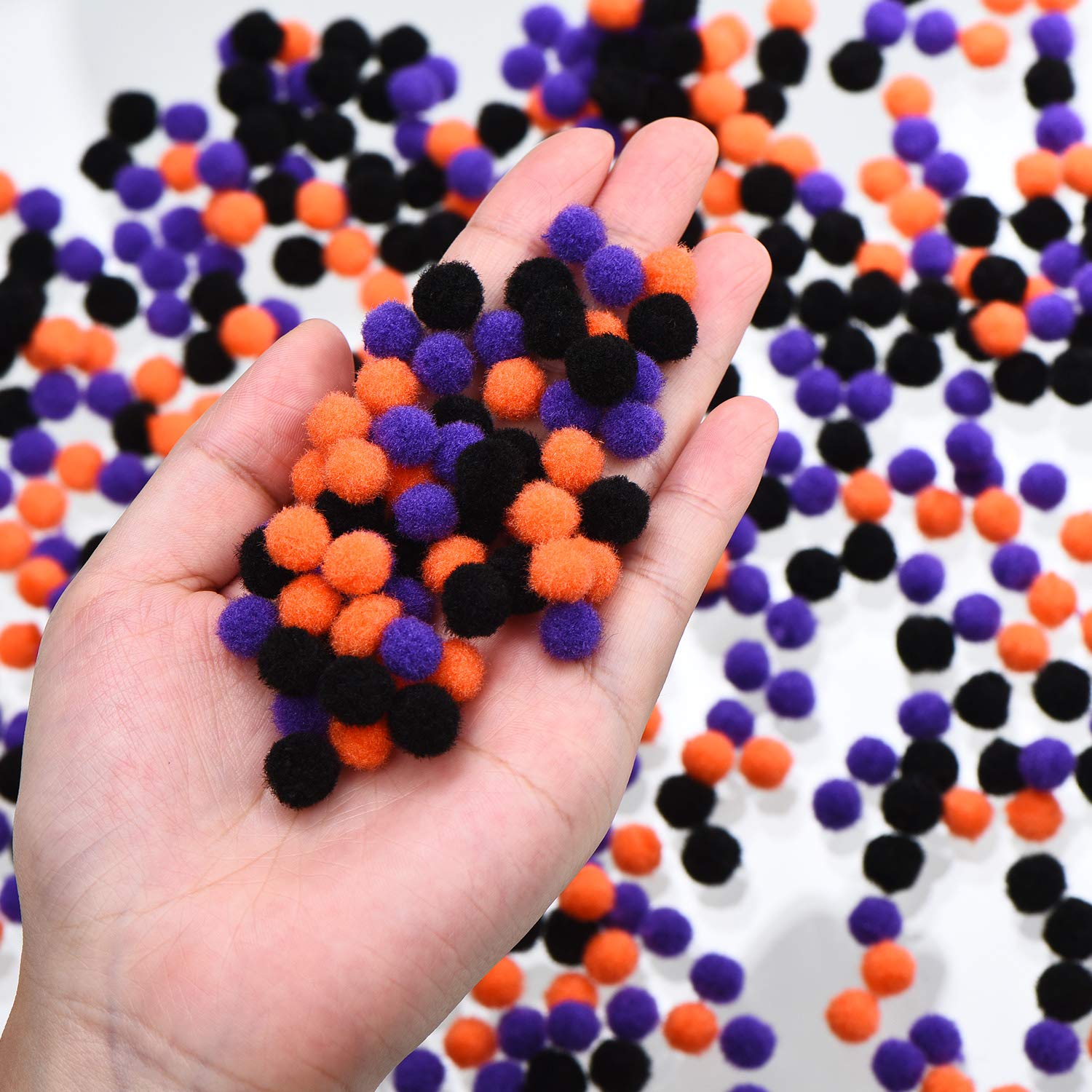 600 Piece Halloween Craft Pom Poms Mini Pompoms Fuzzy & Fluffy Balls for Party Decors (Black, Orange, Purple)