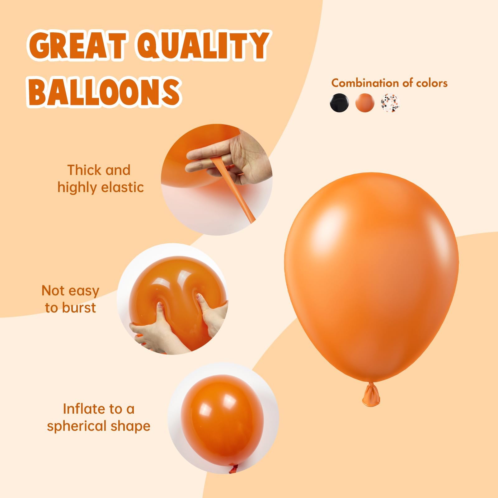 • Package Include: The orange and black balloons include 12inch orange balloonsx25, 12inch black balloonsx25, 12inch black orange confetti balloonsx10, black ribbonx1, decorative stripx1, glue dotsx20