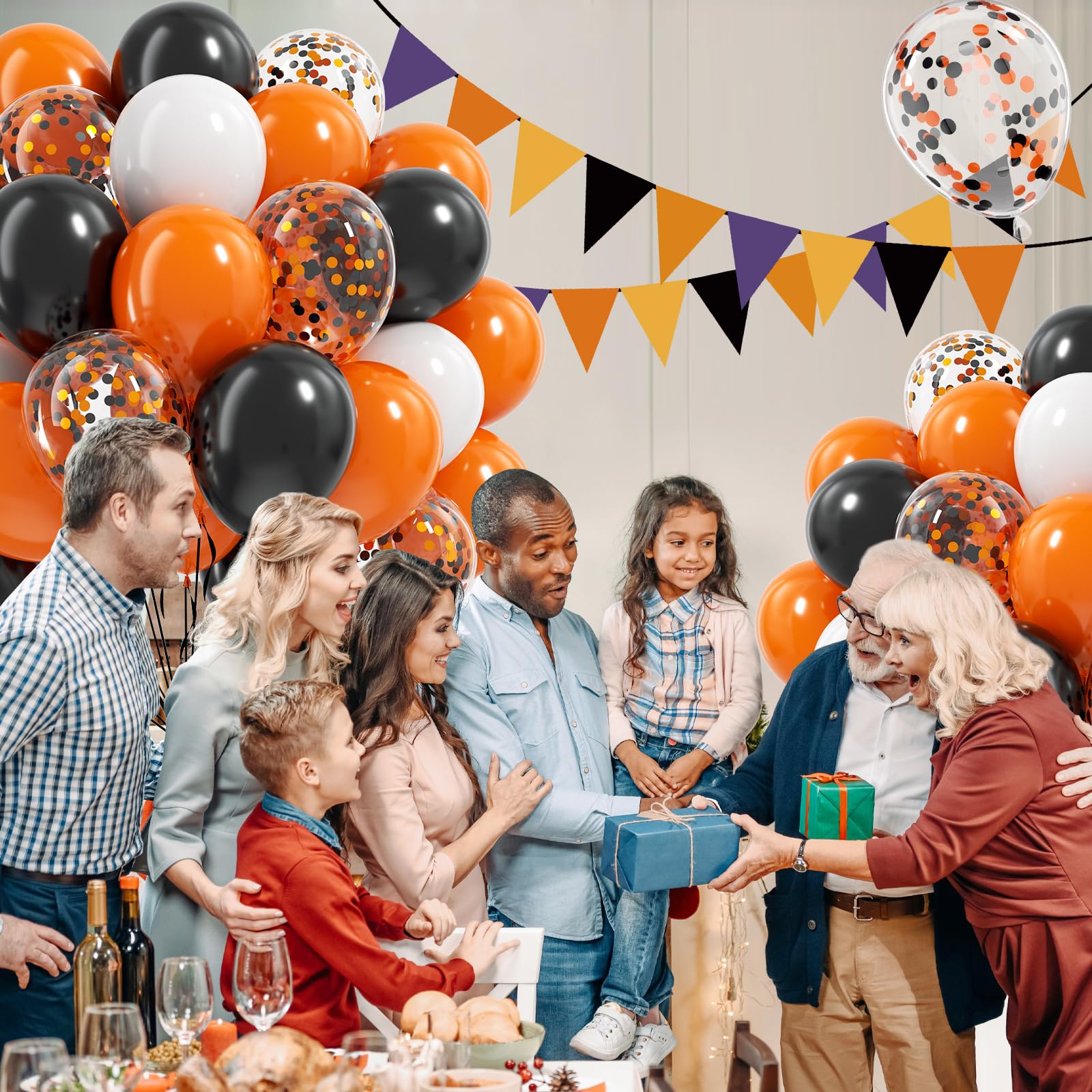 • Package Include: The orange and black white balloons include 12inch orange balloonsx25, 12inch black balloonsx20, white balloonsx5, 12inch black orange confetti balloonsx10, ribbonx1, decorative stripx1, glue dotsx20