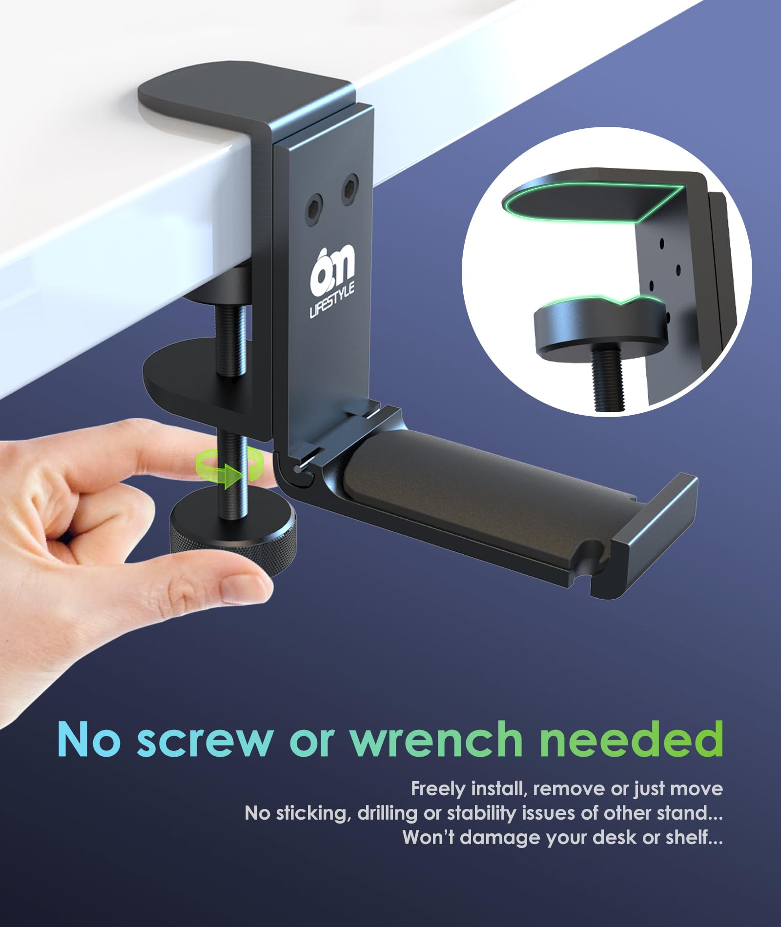 • Anti Scratch Design-Protection of Desk Surfaces: Rubber pads are attached on both clip’s ends, protecting your desk surface from scratches. The headset hanger is able to mount all desk within 50mm thickness. Also suit cabinets, shelfs, even glass flat surfaces