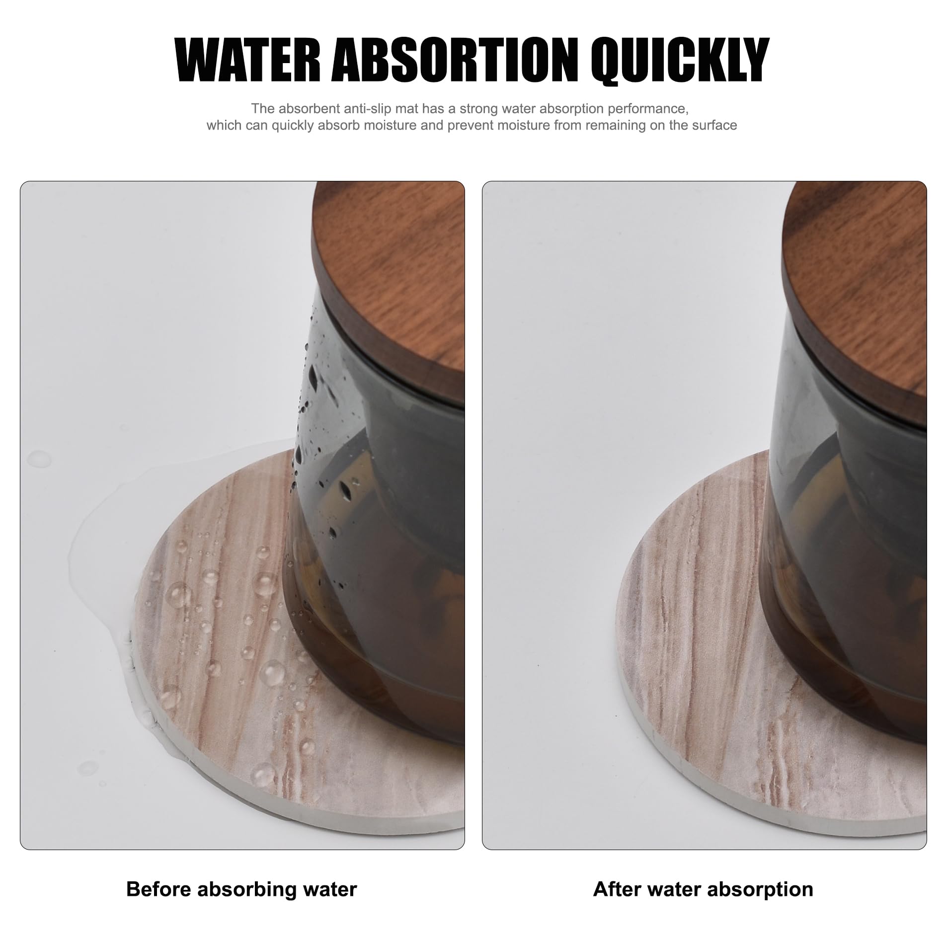 • 【Super Absorbent】: Made of high quality water absorbent ceramic stone, It can absorb the water attached to the glass in a short time, as well as stains caused by coke and coffee. Keep the glass dry and the table clean at all times