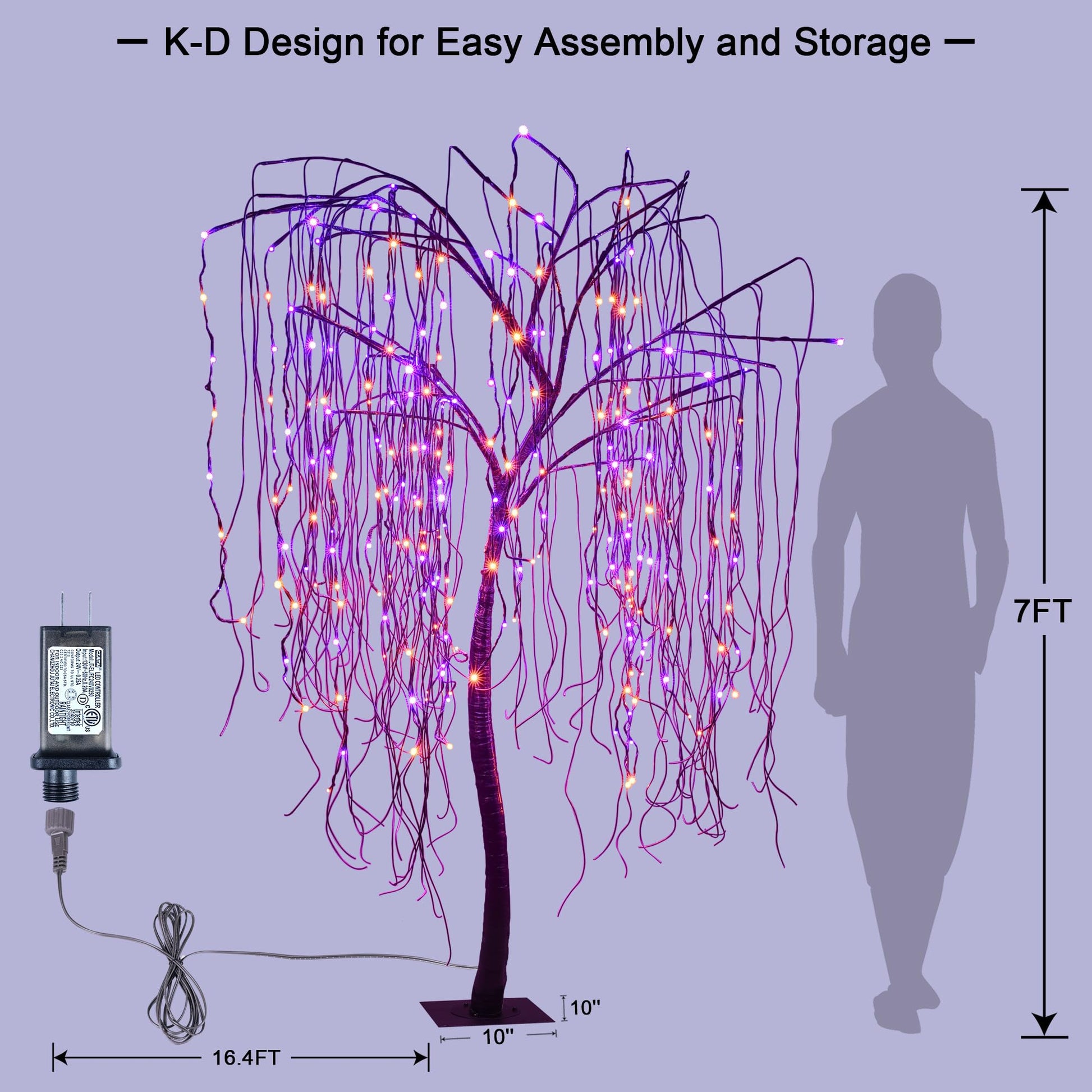 • 【Safe to Use】24V low voltage power supply makes this LED tree light safe to use both indoors and outdoors. 16.4 Foot extra-long leading cord for convenient use. The Halloween tree lights is waterproof, including the adapter. Suitable for Outdoor and indoor use.