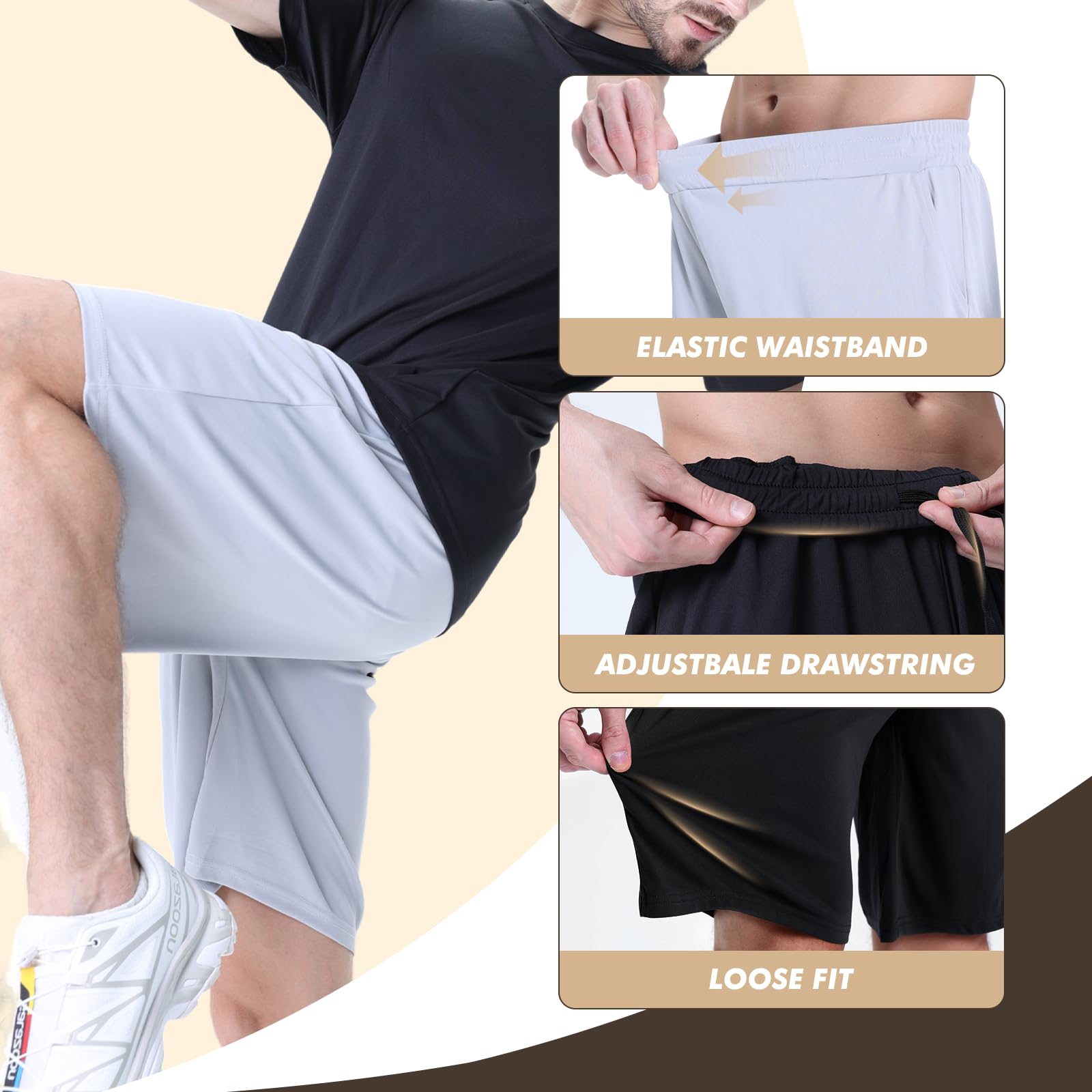 • Fit & LightWeight: Our shorts for men feature an elastic belt design, inclusive of a drawstring. It enables the adjustment of the waist tightness based on personal preferences. Whether during sports or leisure time, it will not shift up and down, providing a very relaxed experience.
