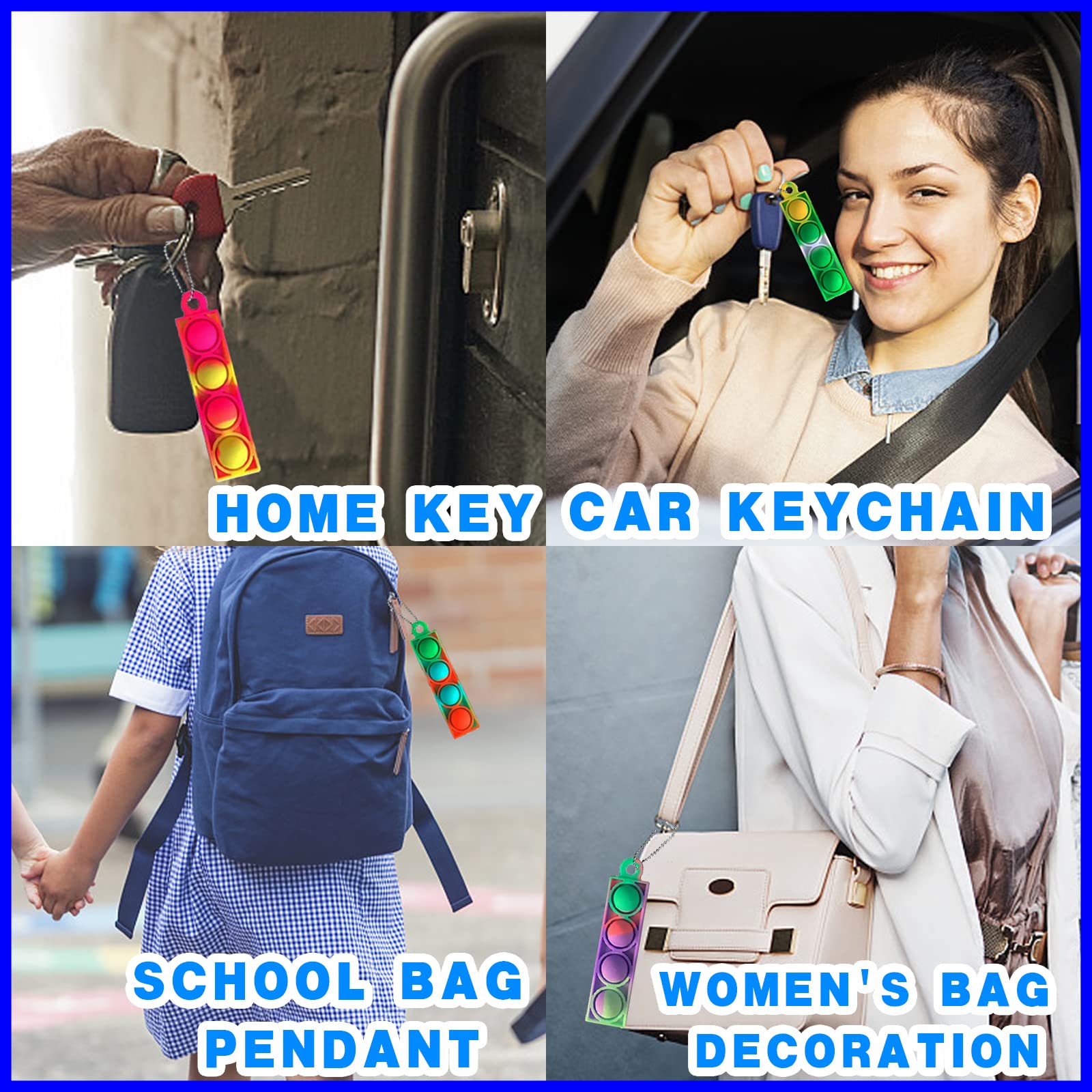 • ❤️ AVAILABLE TO ANYONE: : These mini pop bulk fidget keychain are great for everyone. For kids, this mini toy can improve the ability of calculation and thinking. For adults, relieve stress and keep the brain active, prevent the degeneration. Relieve stress anytime, anywhere.
