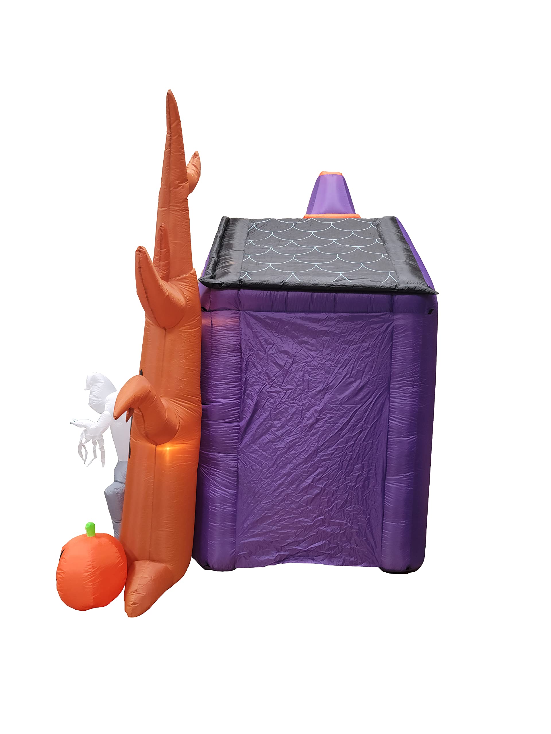 8.5 Foot Halloween Inflatable Haunted House Castle with Skeleton, Ghost, Tree and Pumpkin Lights Decor Outdoor Indoor Holiday Decorations, Blow up