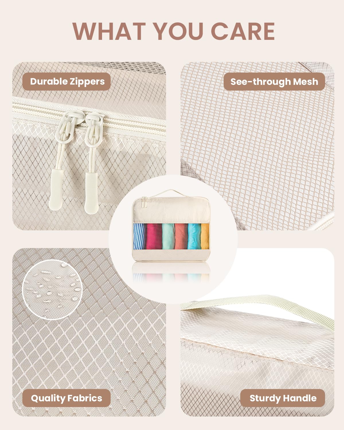 8 Set Packing Cubes, Travel Essentials for Carry on Luggage, Suitcase Organizer Bags Set for Travel Accessories in 4 Sizes(Extra Large, Large, Medium, Small),Cream