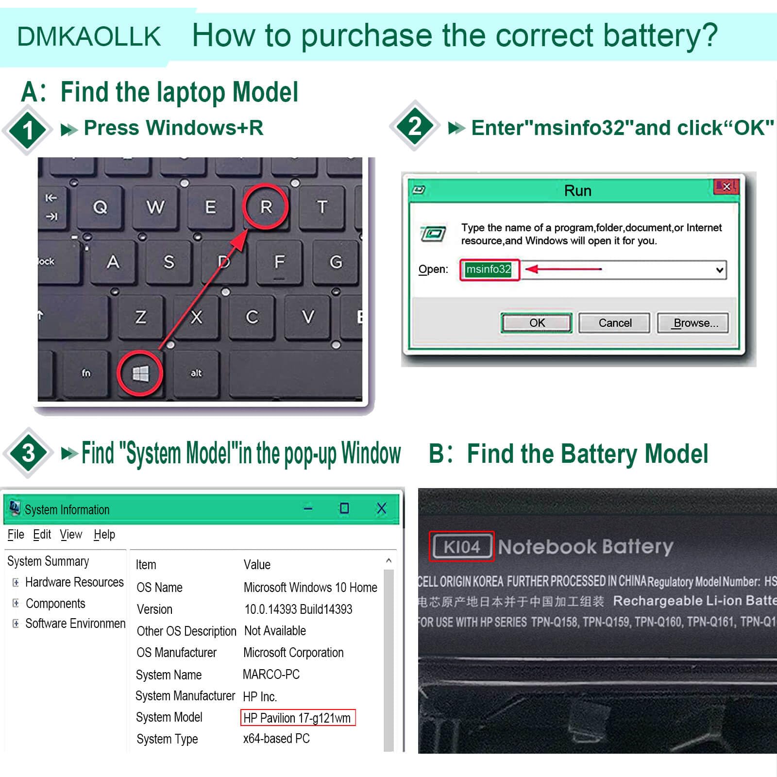• Compatible for hp spare 800049-001, for HP Pavilion 14-ab166us 17-ab220nr 17-ab067nr 17-G101DX 17-g015dx 17-G130NR 17-g130ds 17-g204cy 17-g133cl 17-g219cy 17-g127ds 17-g153us 17-g101dx 17-g141dx 17-g199cy 17-g136nr 17-g148dx 17-g199cy 17-0192dx 17-g119dx 17-g070ca 17-G077CL 17-G084CA 17-G099NR 17-G101AU 17-G101AX 17-G102AU 17-G102AX 17T-G000 17T-G100 ; P/N: 800050-001 800049-001 800010-421 800009-241 800009-421 HSTNN-DB6T HSTNN-LB6R HSTNN-LB6S HSTNN-IB6X KI04 K104 TPN-Q158 TPN-Q163