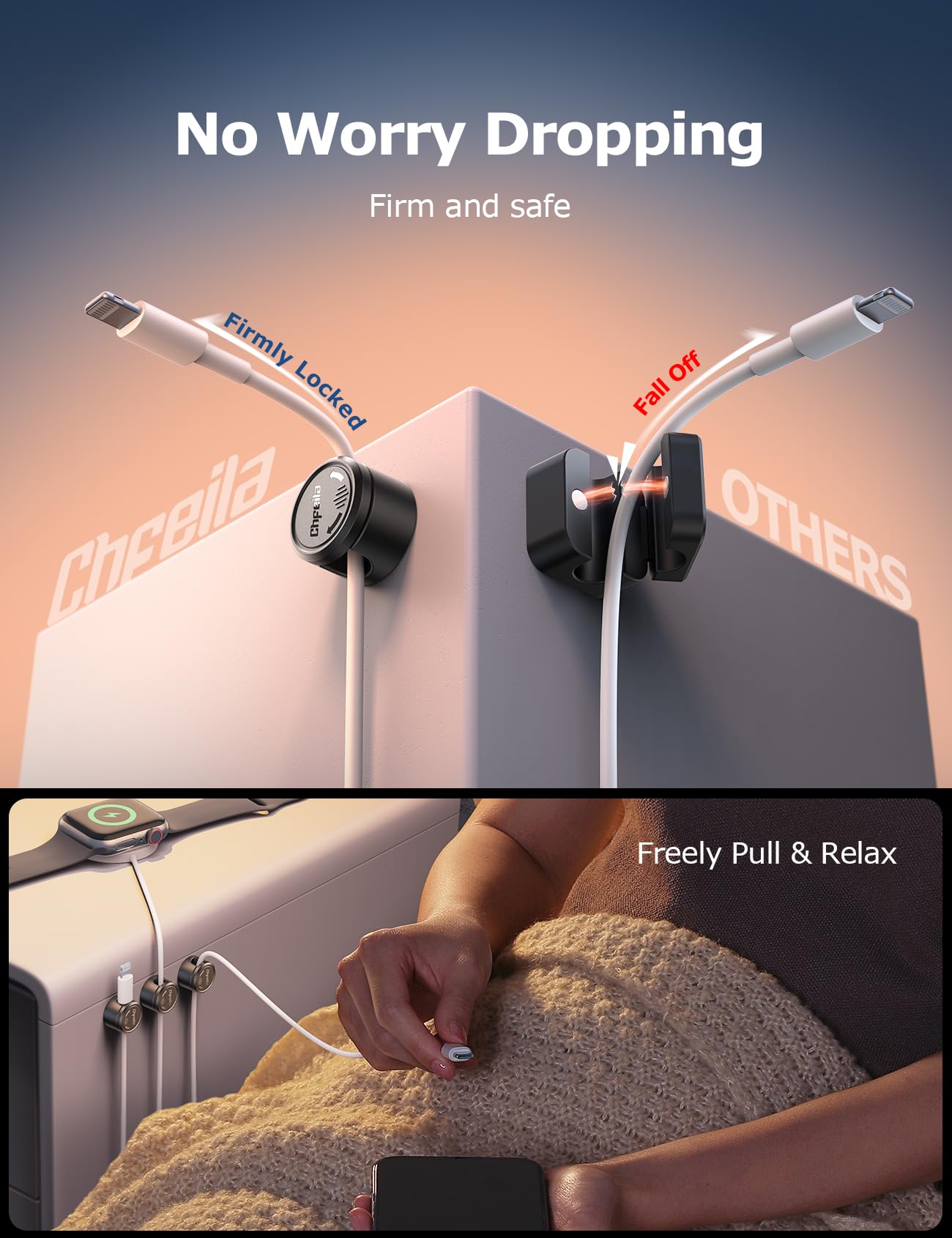 ![9 Pack Cord Organizer, Chfeila [360°Rotating Twist-Lock] Magnetic Cable Management Clips, Adhesive Phone Charging Keeper Wire Cord Holder for Nightstand/Car/Wall, Office Desk Accessories Decor (Black)](http://shopspikes.com/cdn/shop/files/7106qYyuEBL.jpg?v=1760670936&width=1445)