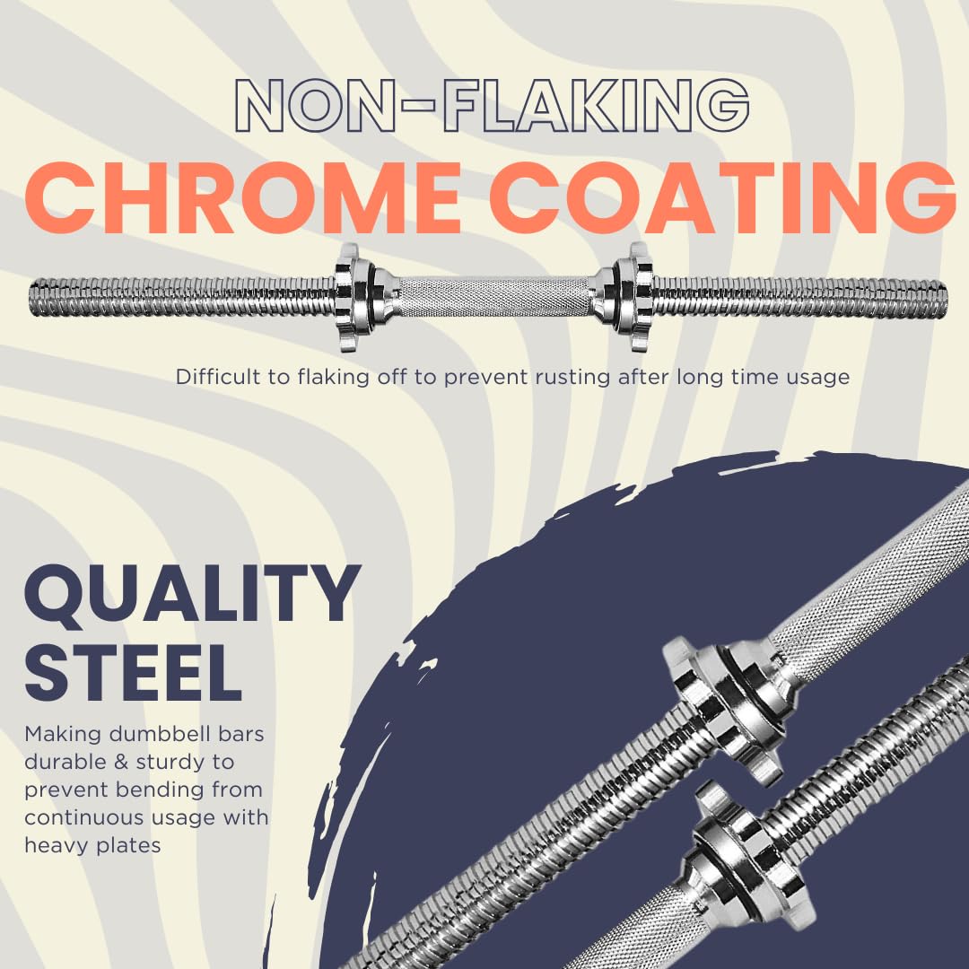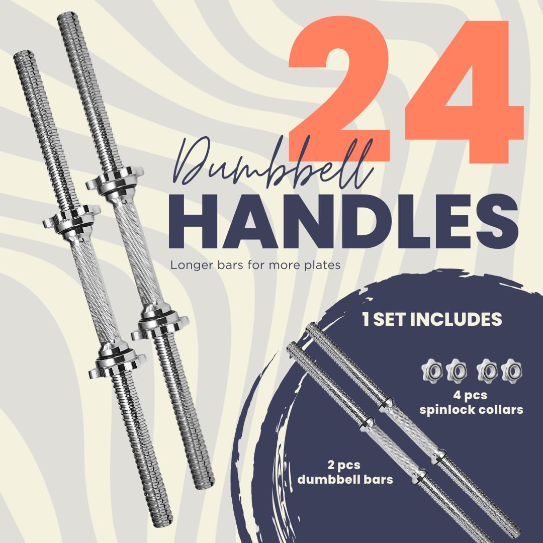 A2ZCARE Standard Dumbbell Handles 24 inch Chrome Grip, Adjustable Dumbbells Handles 1 inch Pair