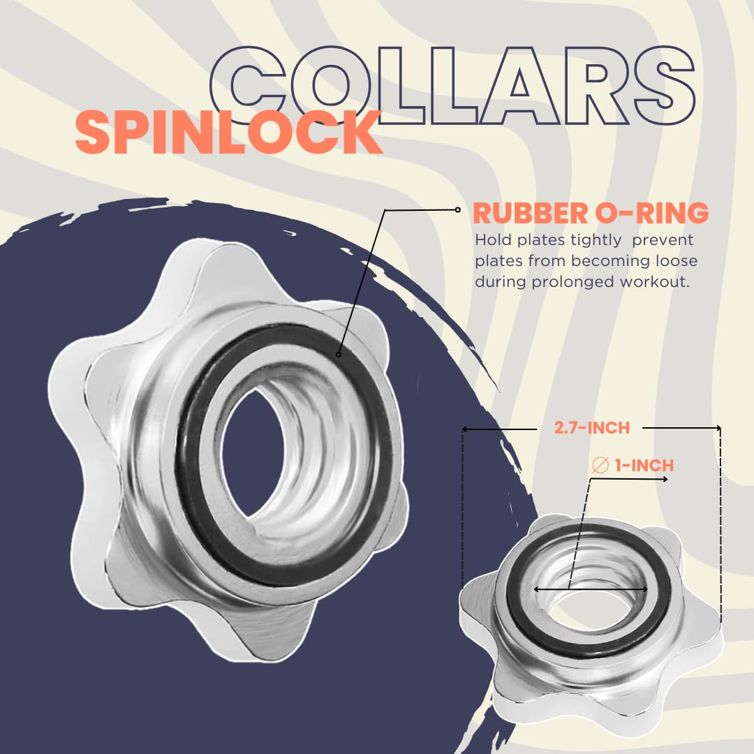 • 4 SPINLOCK COLLARS with TIGHT RUBBER O-RINGS - They are attached with A2ZCare dumbbell handles 1 inch pair can SNUGLY HOLD 1’’ plates with various sizes of weight & prevent plates from becoming loose during prolonged workout.